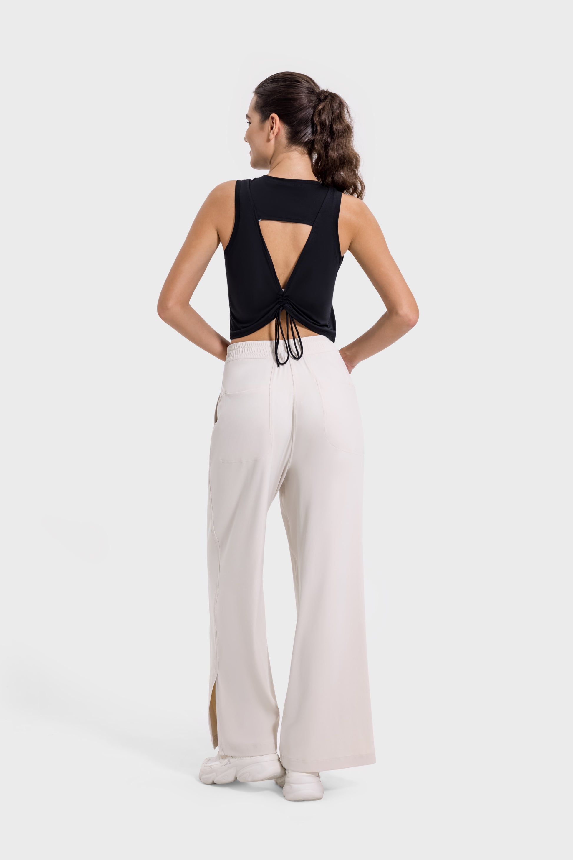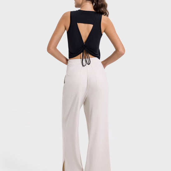 This shallow sports vest breaks the norm with an innovative back pleat design, featuring a hollowed out cut and adjustable drawstring that not only outlines beautiful back lines but also achieves precise fit. The high elasticity and lightweight transparent fabric is as comfortable as a second layer of skin, allowing for free breathing during exercise and moisture wicking technology to keep you fresh at all times. Whether it's yoga meditation or outdoor training, fresh colors and dynamic designs can perfectly blend sports and fashion, showcasing a dynamic posture.