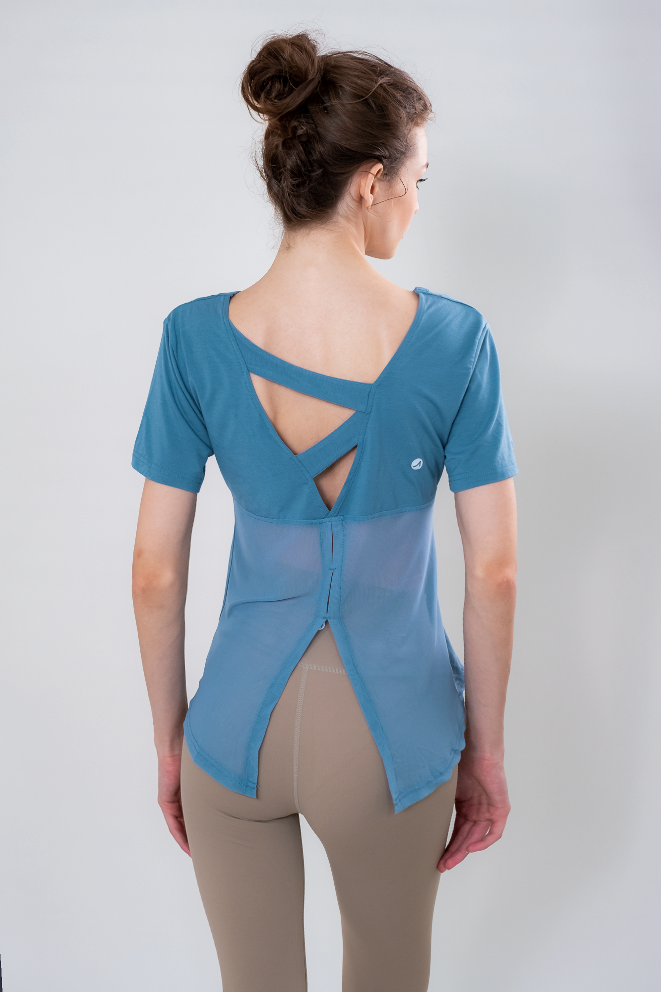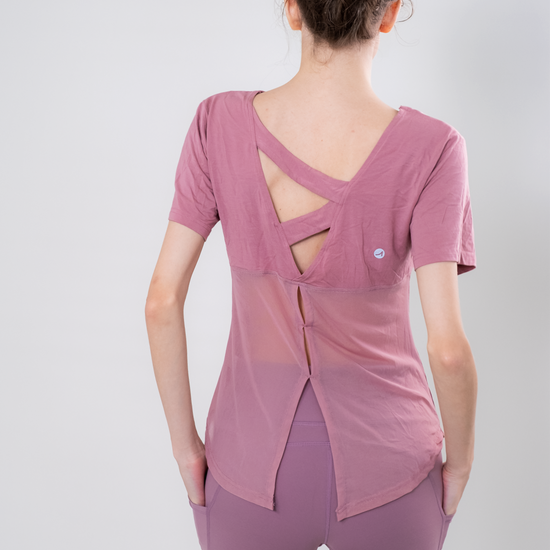 BreezeBack Split-Mesh Yoga Top READY STOCK