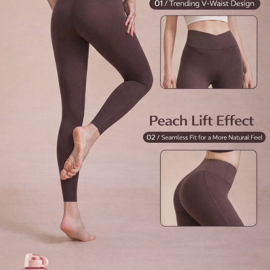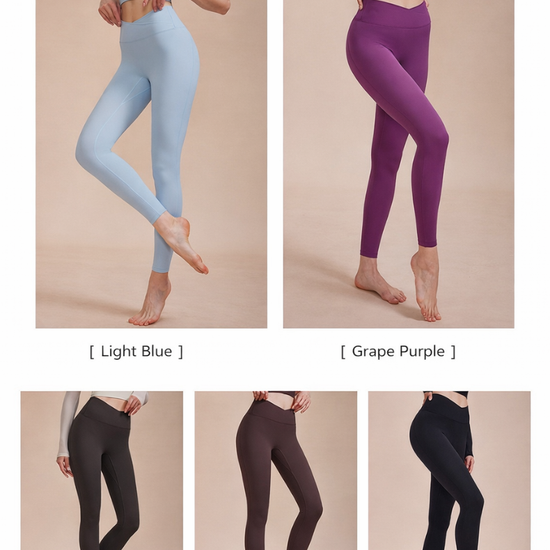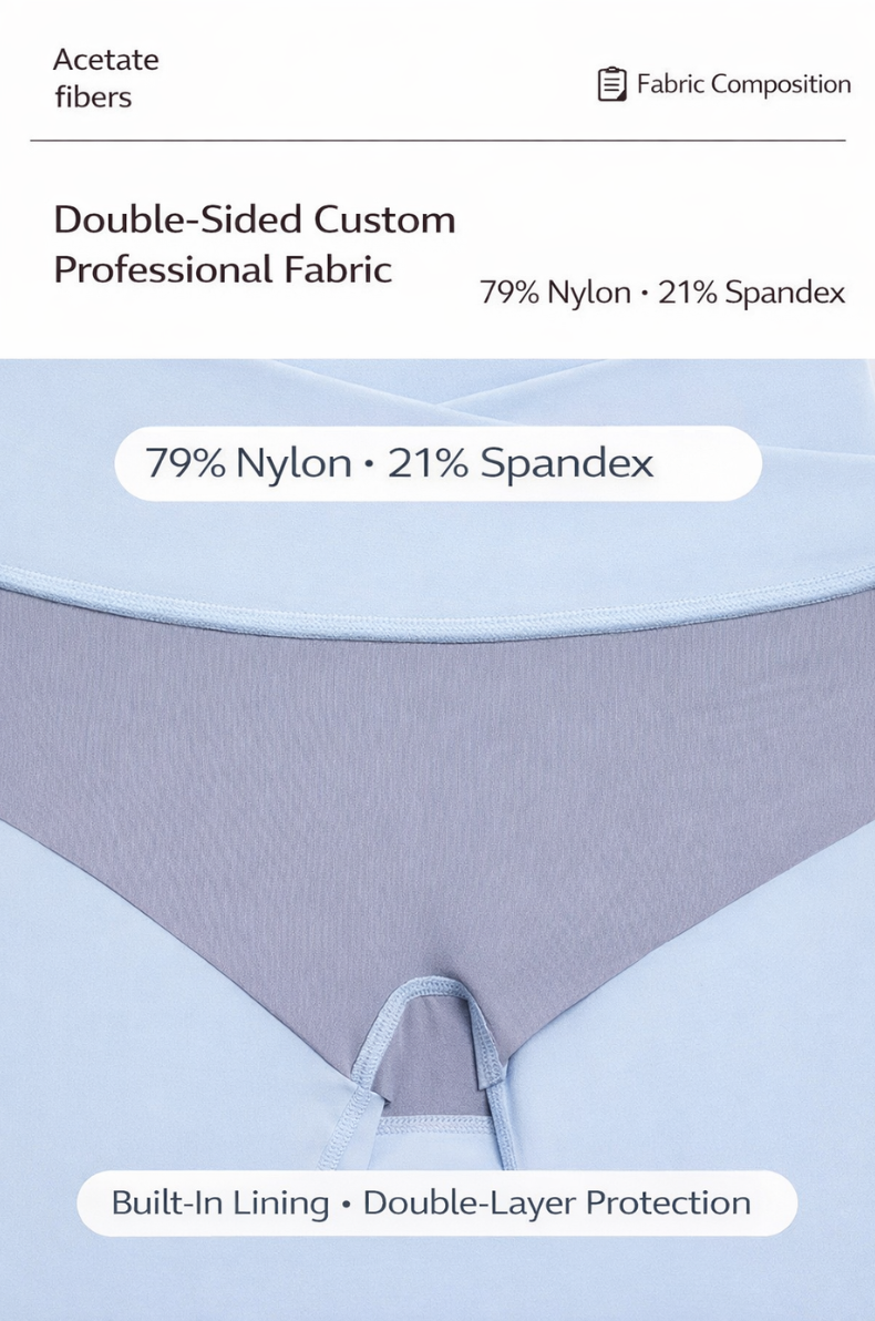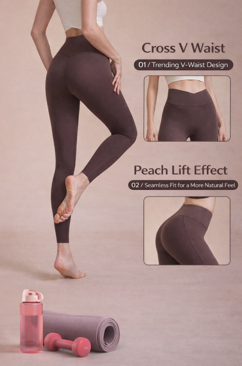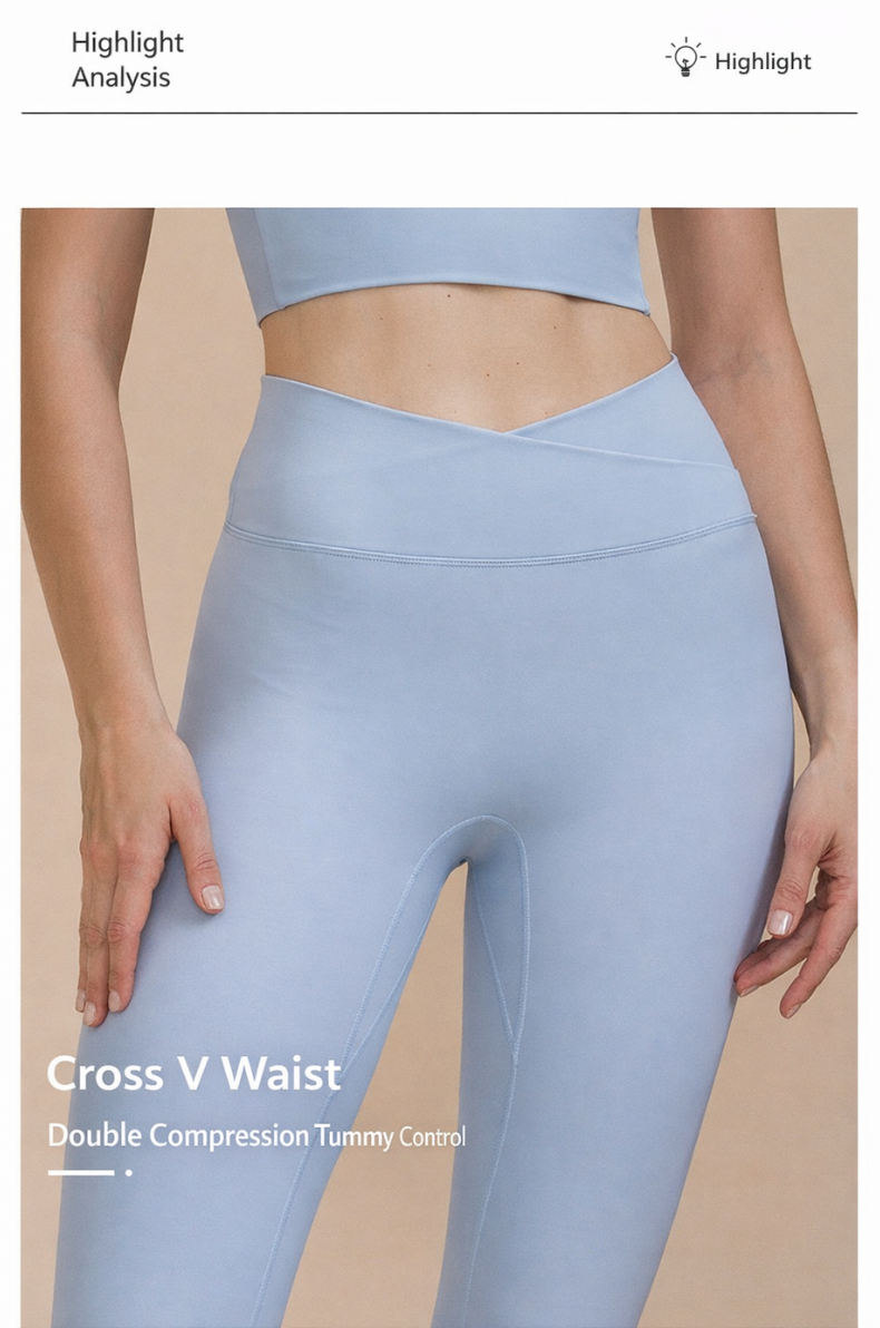 Made with a double-sided custom fabric blend (79% nylon, 21% spandex), these leggings provide ultra-soft stretch, breathability, and long-lasting shape retention. The trending Cross V waist design enhances your natural curves while offering gentle compression and tummy control for a slimmer look.