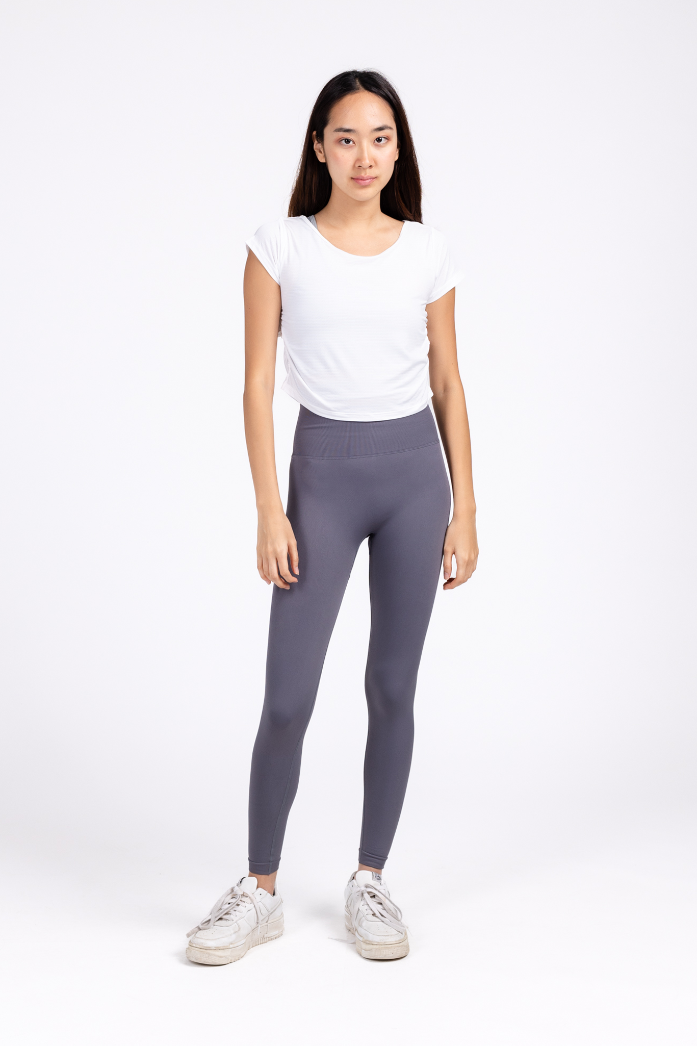 4.5" Rise ribbed waistband can be worn folded or scrunched