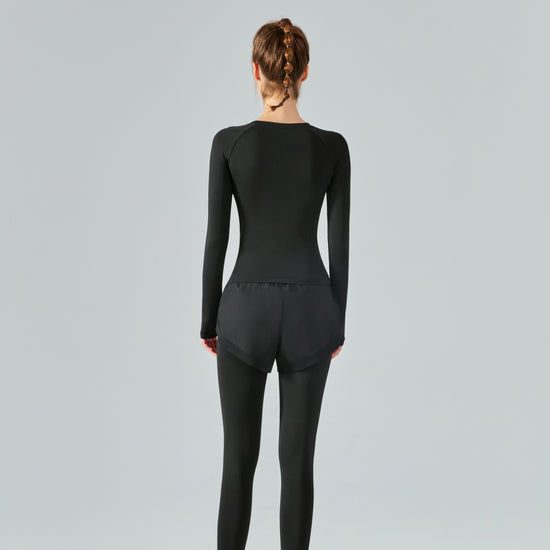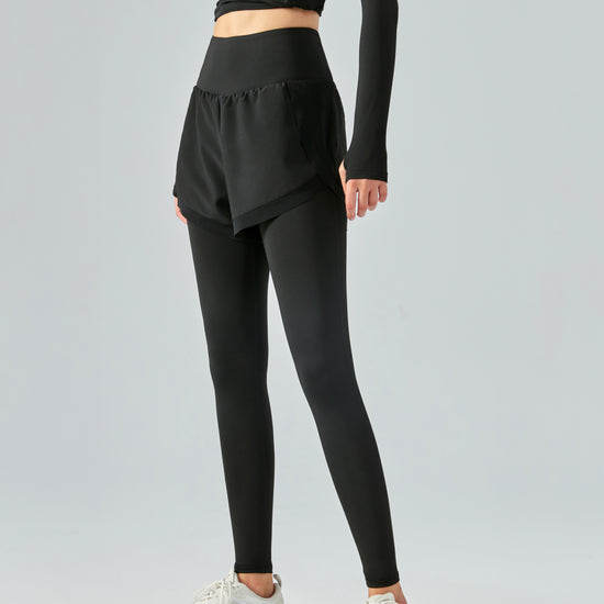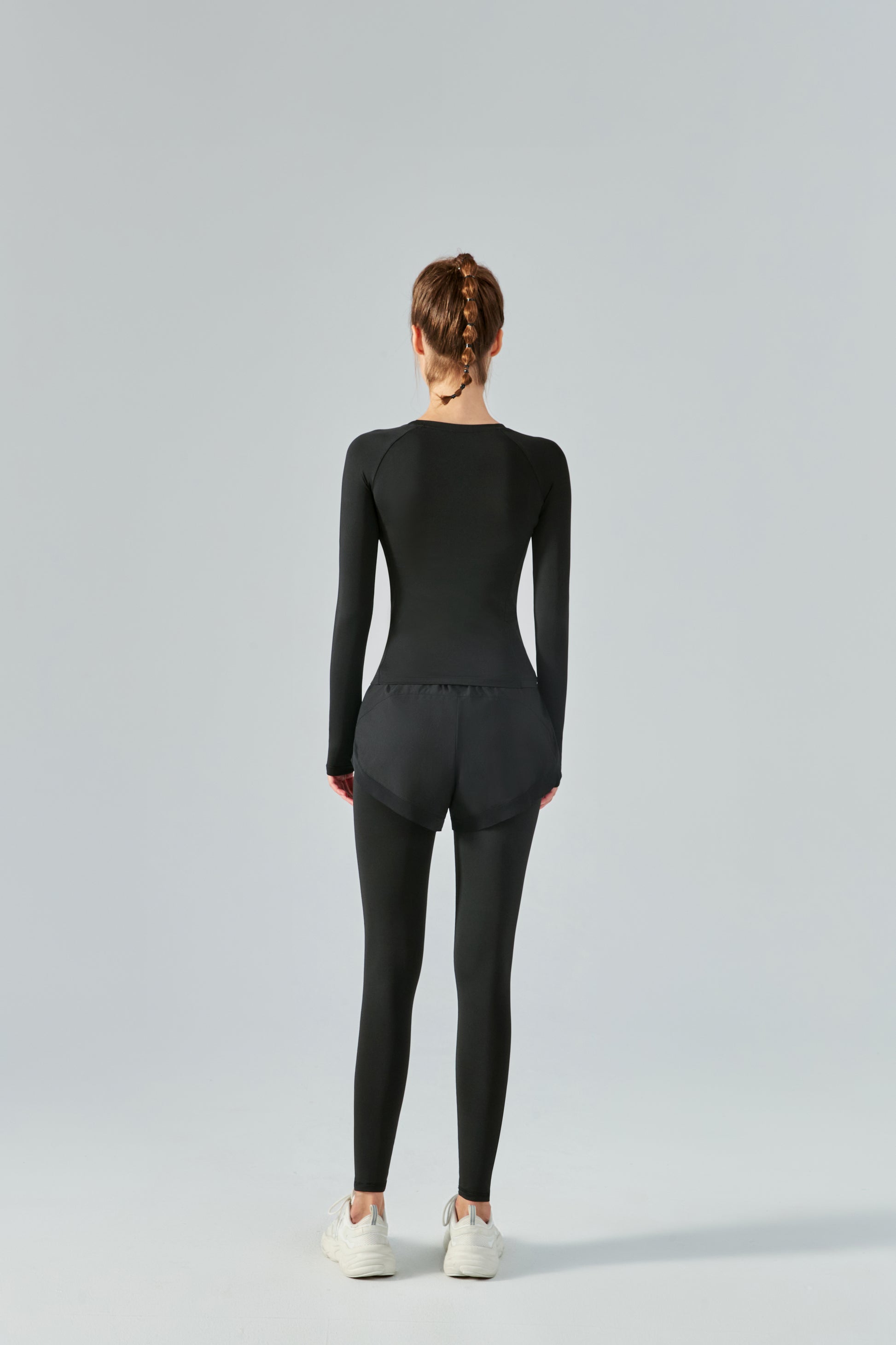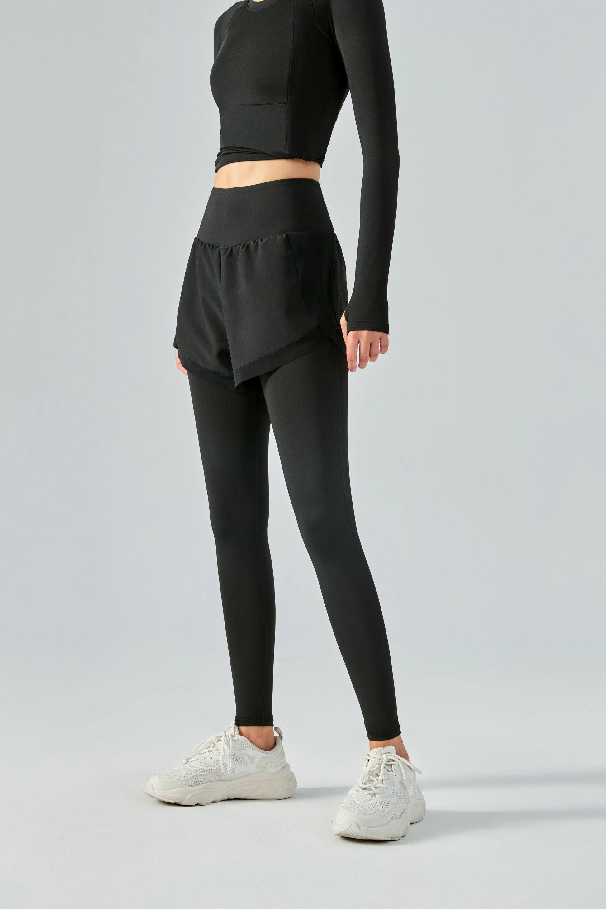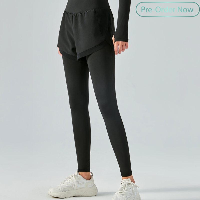 This sports fake two-piece pants showcases a minimalist yet stylish sports style. The pants fit snugly against the curves of the thighs, providing comfort and elasticity, allowing you to move more freely.
