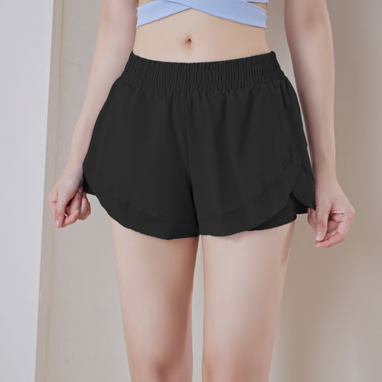 This black sports shorts are made of lightweight elastic fabric, providing a naked wearing experience. The high waisted elastic design fits the waistline and accommodates a variety of body types. The anti glare design of the fake two pieces is very thoughtful. Whether sweating in the gym or strolling on the street, you can showcase your spontaneous charm. With lightweight materials and stylish silhouettes, it is a must-have versatile item for your wardrobe this summer, helping you freely switch between sports and leisure scenes.