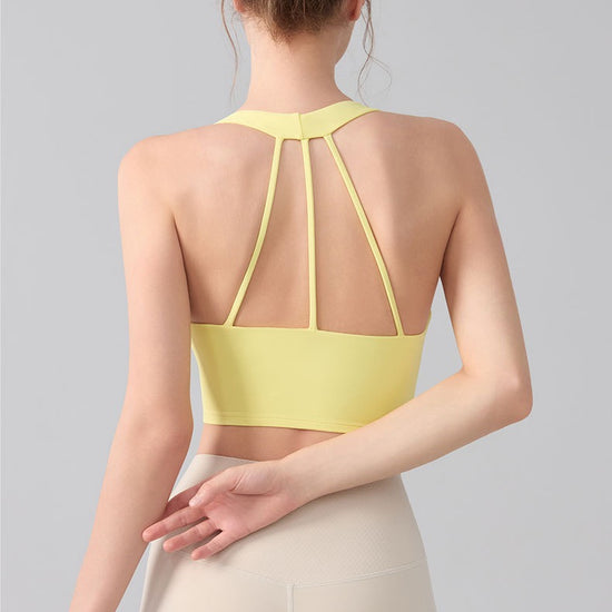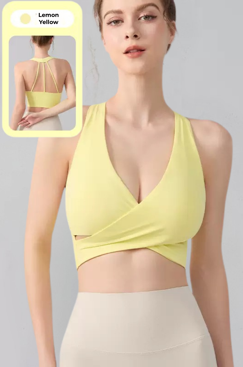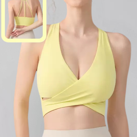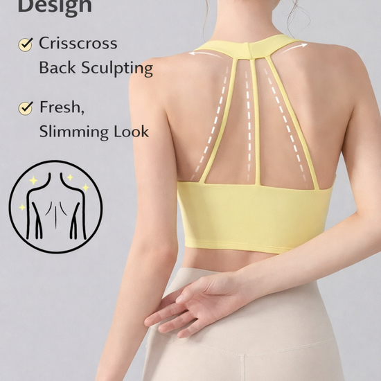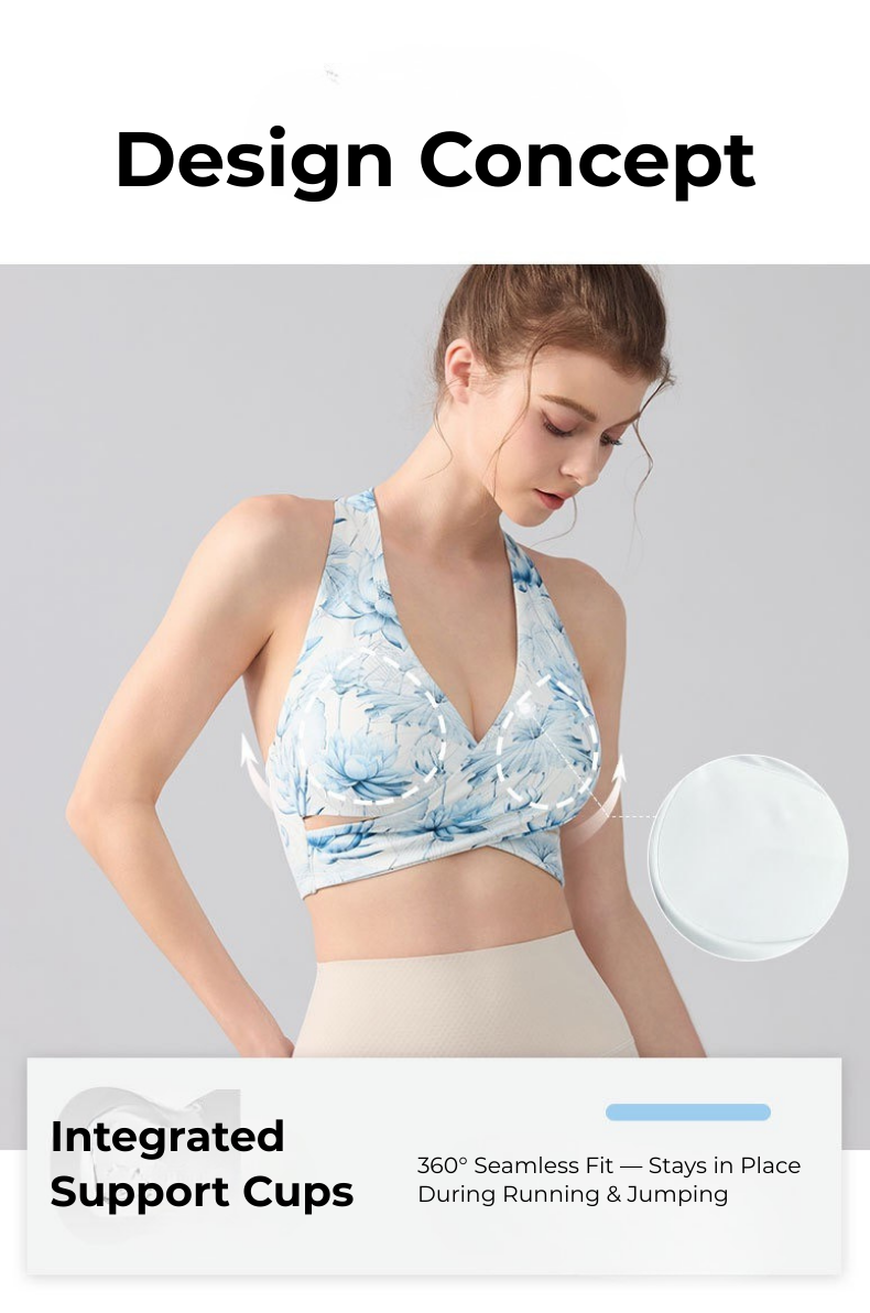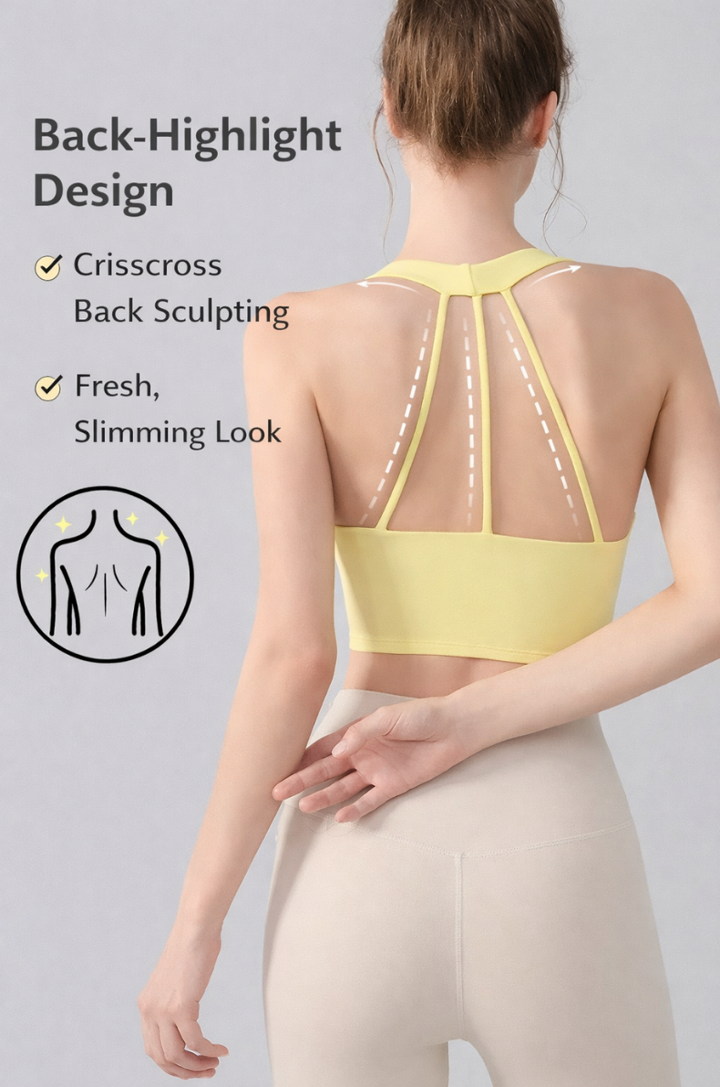 The integrated support cups create a smooth, secure fit that stays in place during movement, making this sports bra ideal for yoga, training, and athleisure styling.