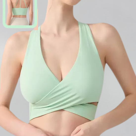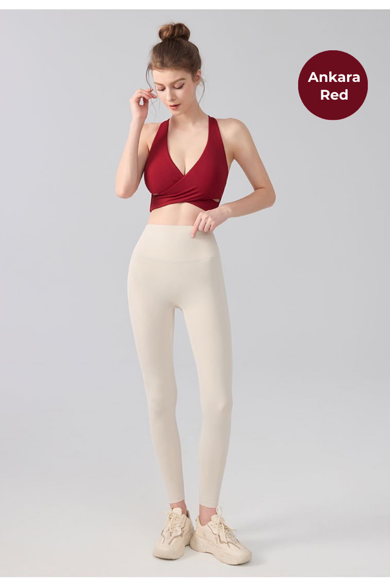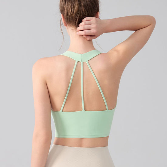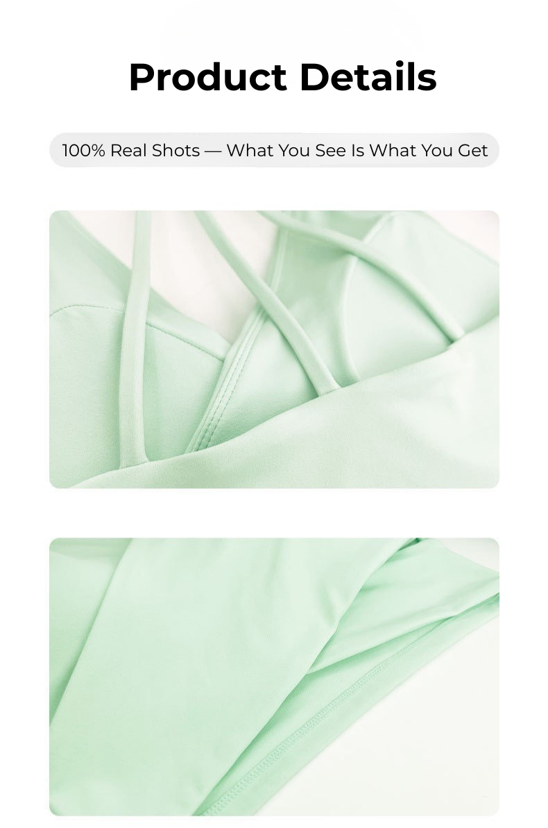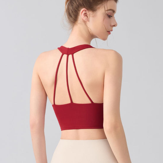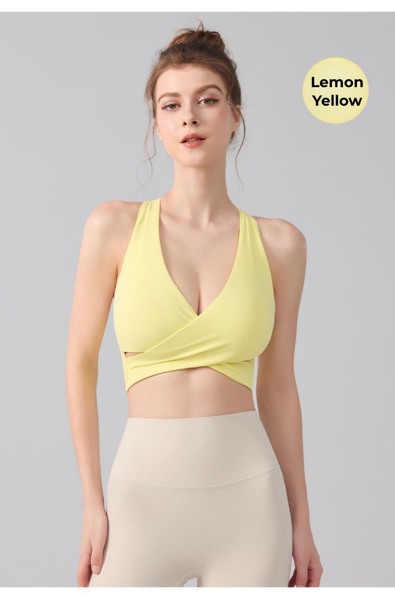 The integrated support cups create a smooth, secure fit that stays in place during movement, making this sports bra ideal for yoga, training, and athleisure styling.