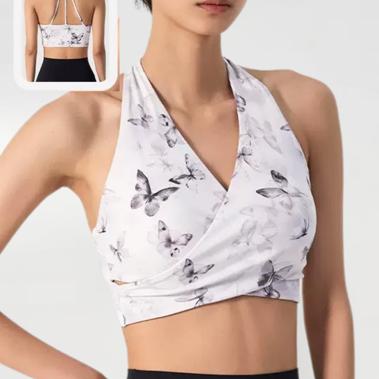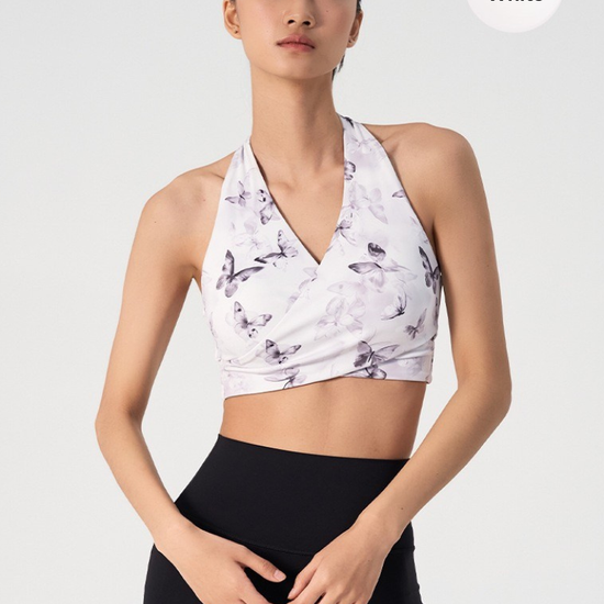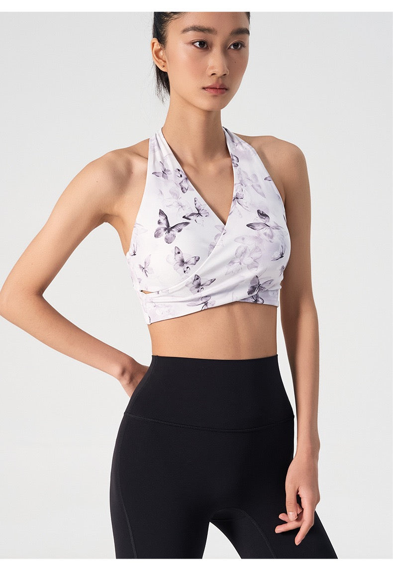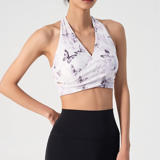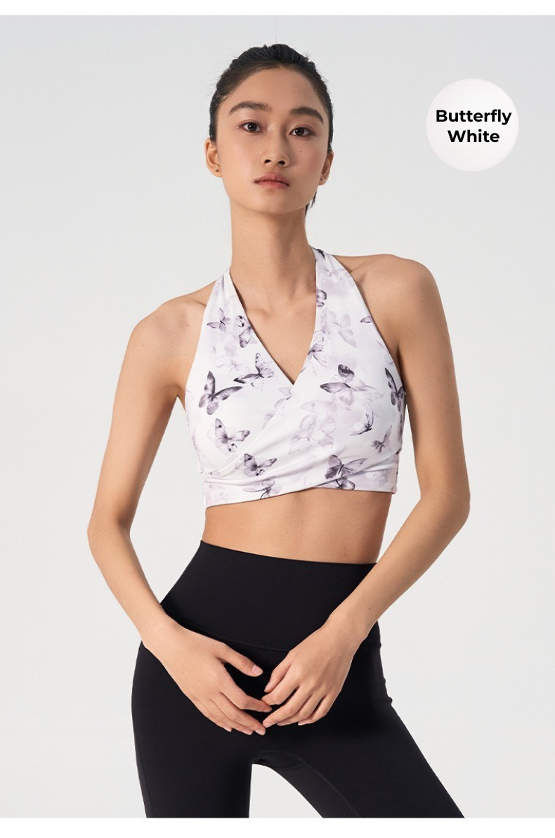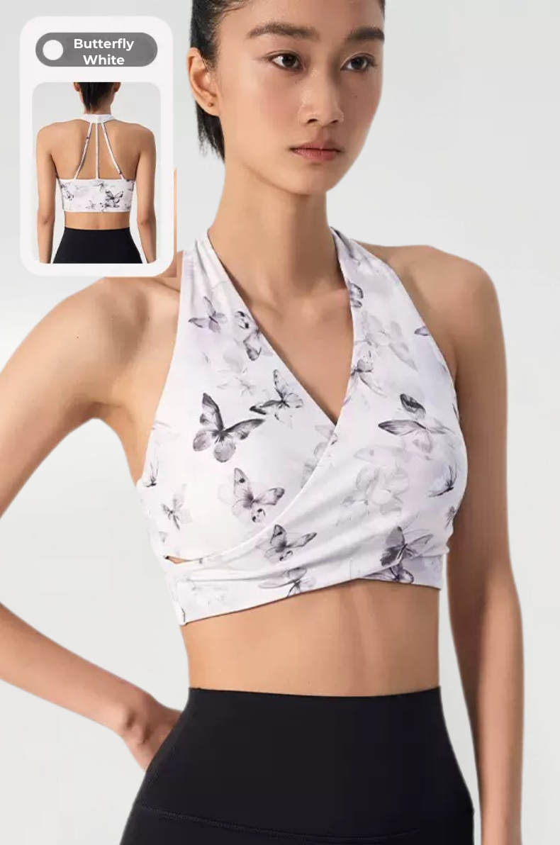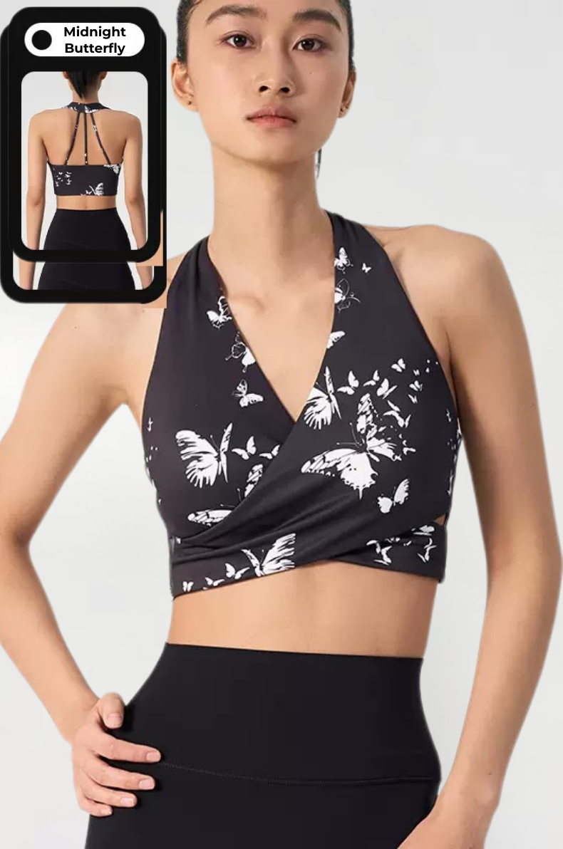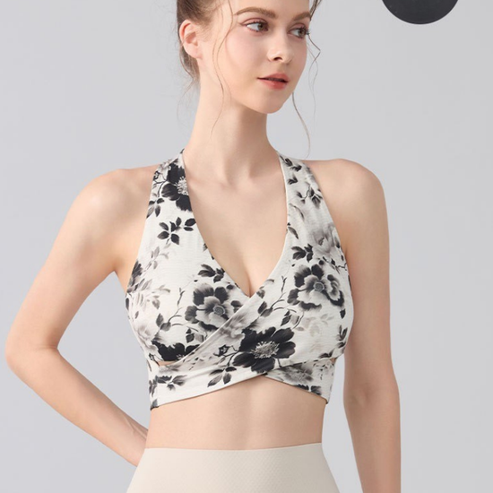 Ink Floral Halter Sports Bra – Twist Front Seamless Yoga Top