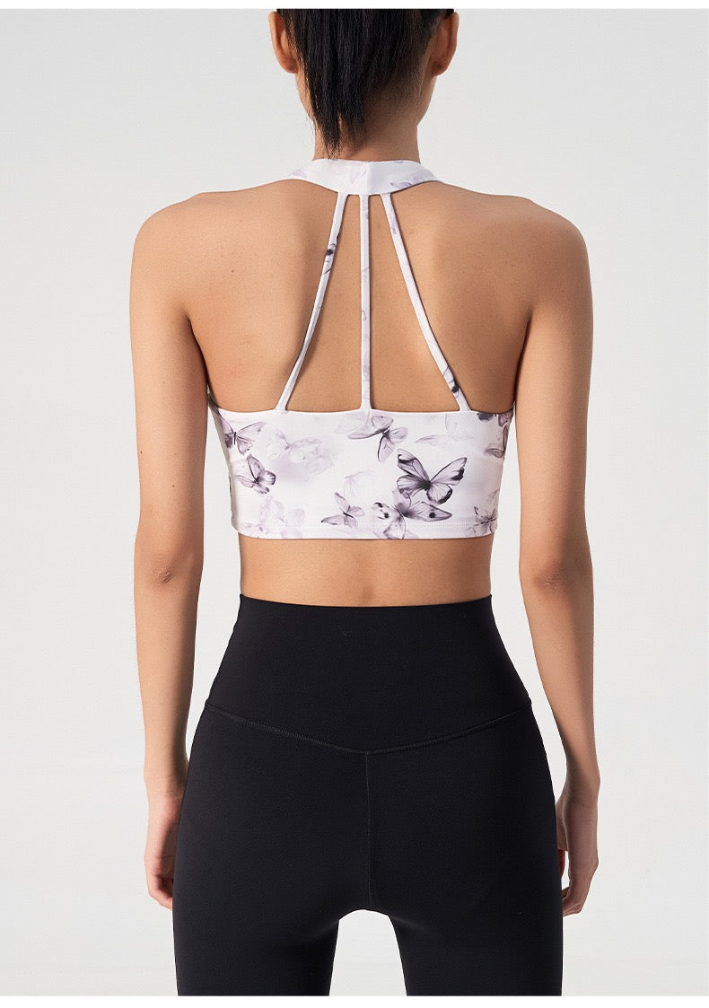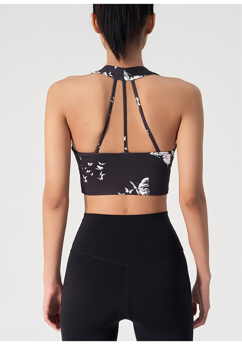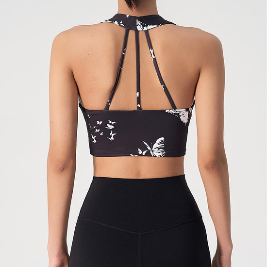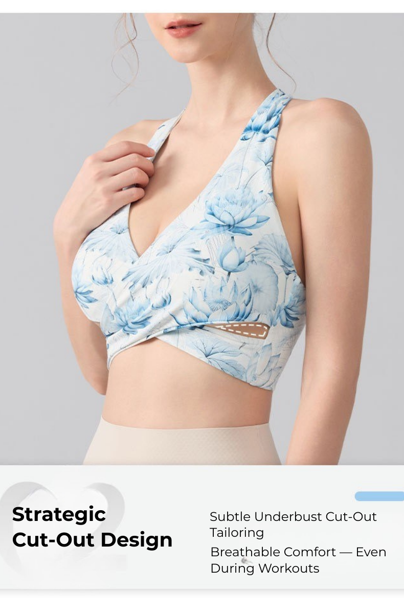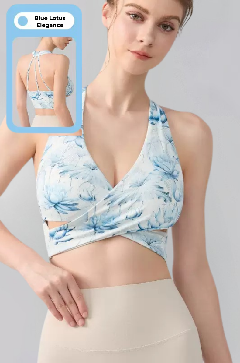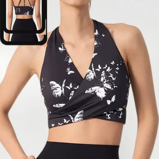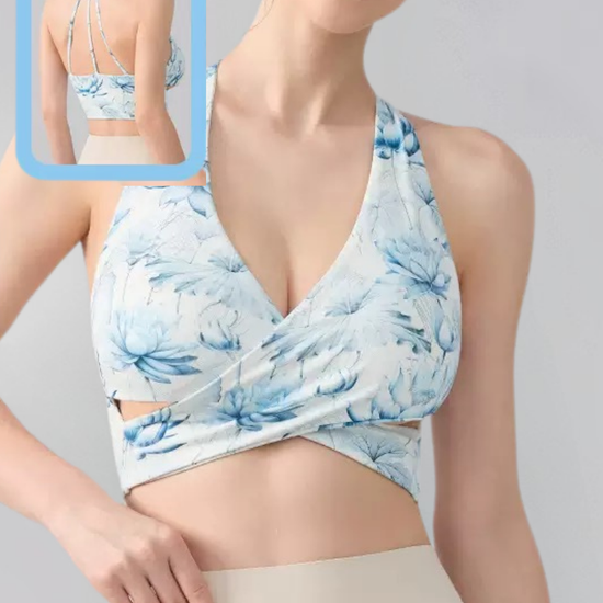 Ink Floral Halter Sports Bra – Twist Front Seamless Yoga Top