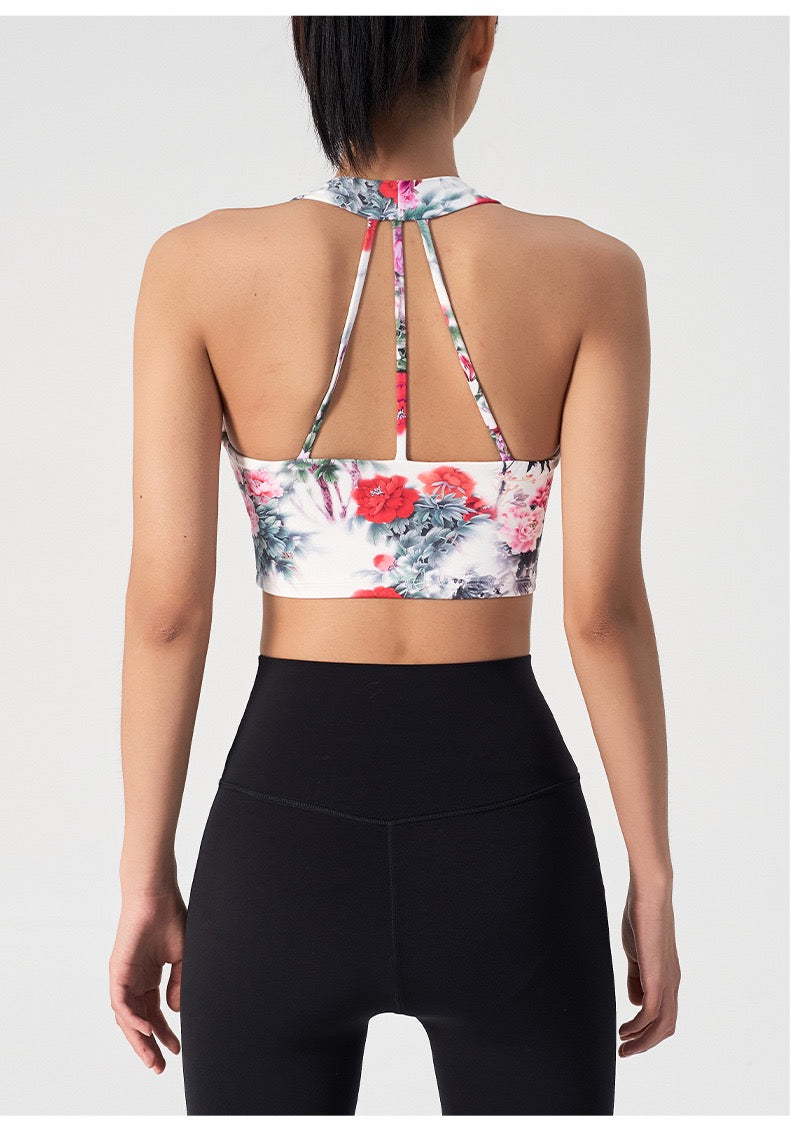 Ink Floral Halter Sports Bra