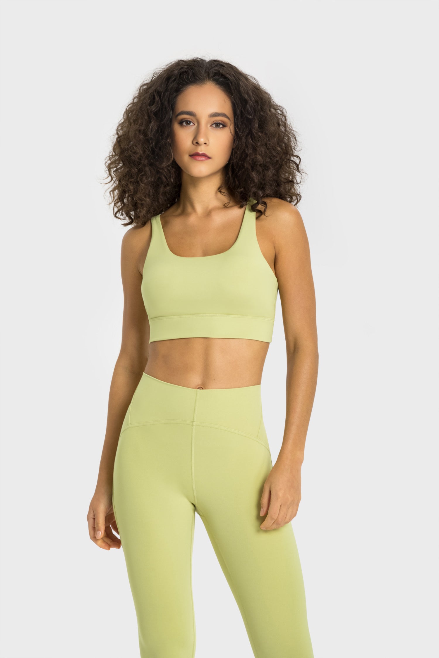 With fresh and natural tones and flattering cut, this sports bra brings lightness and vitality to you who love sports. The vest design with skin-friendly straps is not only comfortable to wear, but also shows the soft lines of women. The bra is made from high-quality fabrics that are breathable and elastic, so it stays dry and tight even when you're exercising. Whether you're running outdoors, working out in the gym or taking a yoga class, this sports bra provides you with all-round comfortable support.Choose it to start your energetic sports journey and make every workout a joyful and confident experience.