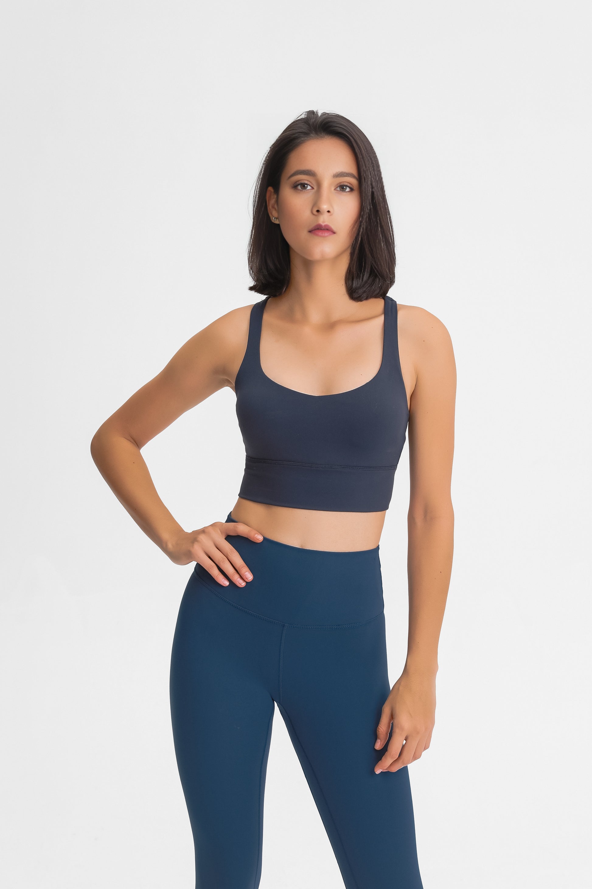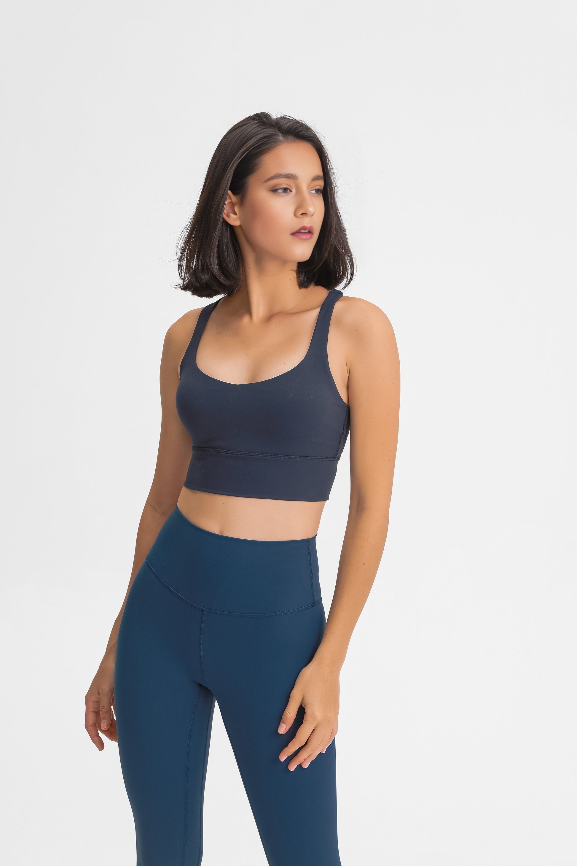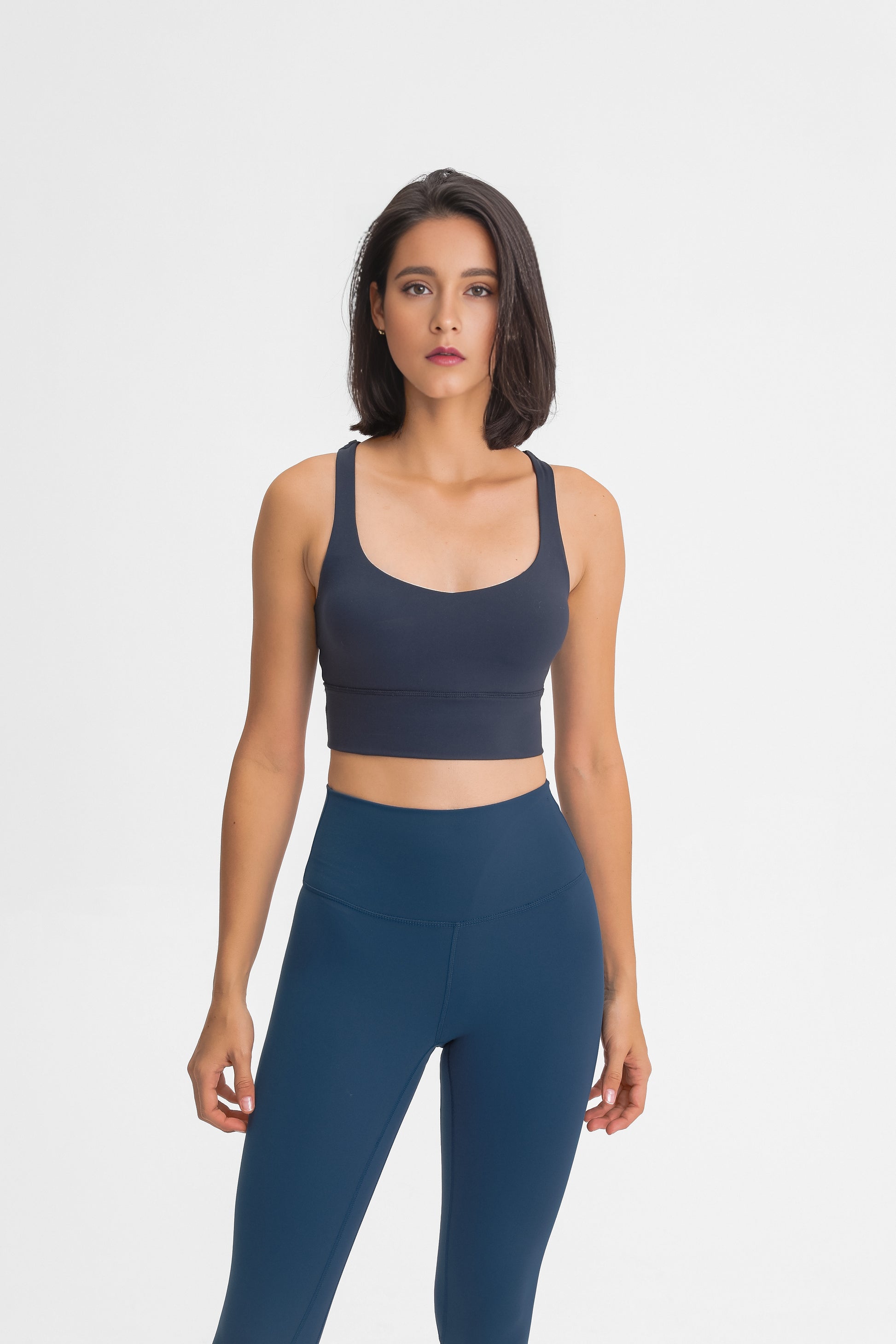 This Mint Blue sports bra is made of high quality double-sided brushed fabric for ultimate comfort. The fabric is soft, skin-friendly and breathable, keeping your skin dry and comfortable even during intense exercise. The bra is designed to fit snugly and perfectly show off a woman's delicate curves, while providing enough support to ensure stability during exercise. Whether you're running outdoors, working out in the gym, or taking a yoga class, this sports bra provides you with all-round comfort and protection. Choose it to make every exercise a pleasure, unleash your athletic potential and show your unique style.