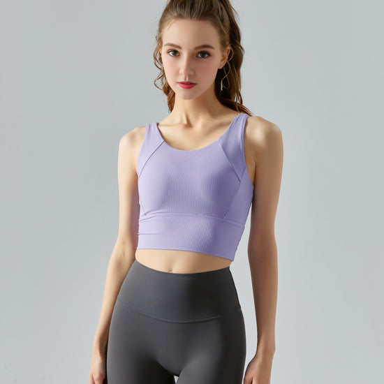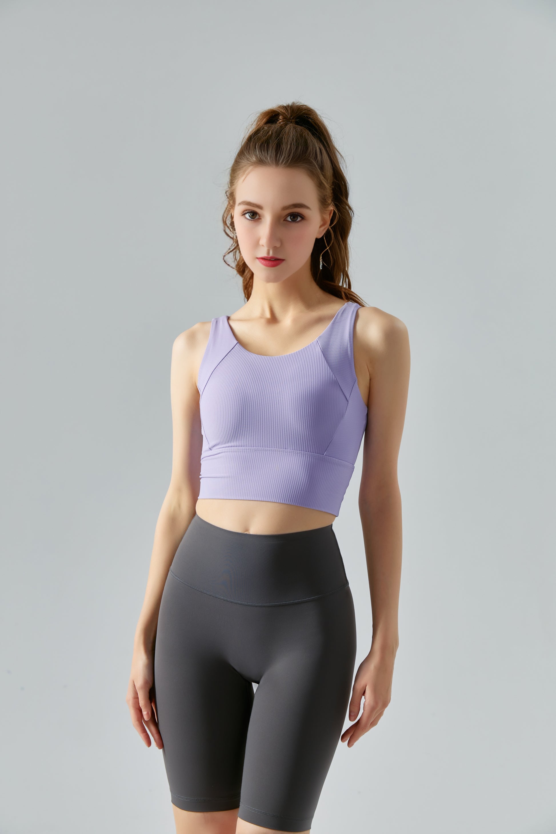 Made of three-dimensional ribbed texture fabric, it is a perfect blend of sporty fashion and functional technology. 3D cutting combined with a rounded neckline outlines the elegant neckline, and the narrow shoulder straps conceal high-density support strips, which provide zero-sense support for anti-shock and anti-slip. The high elasticity ribbed structure extends freely with the body's rhythm and quickly removes moisture and heat during exercise. Whether you're sweating, training, or wearing it everyday, the stretchy wrap and aesthetic design unlock an all-day comfort experience that makes you feel confident in every move.