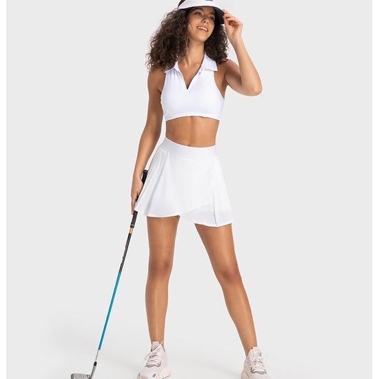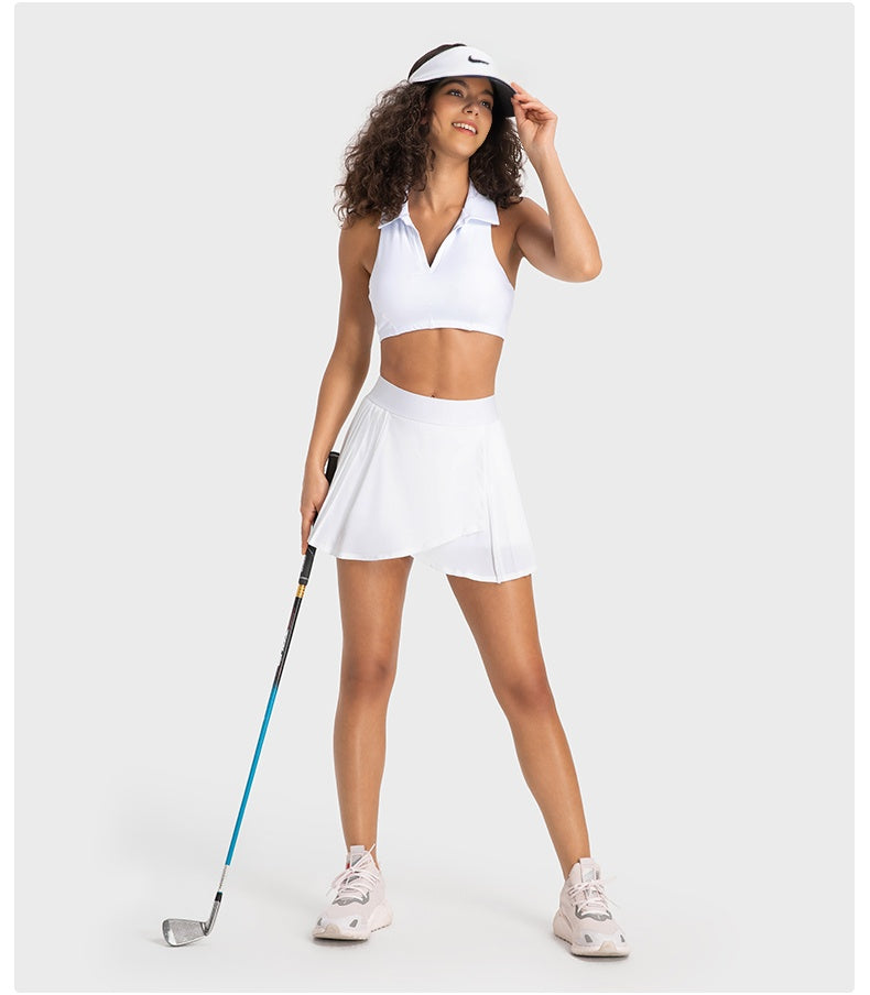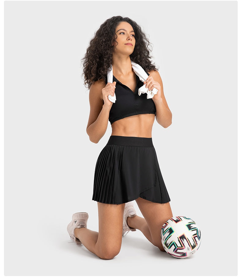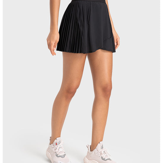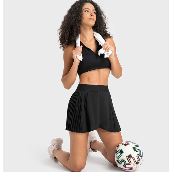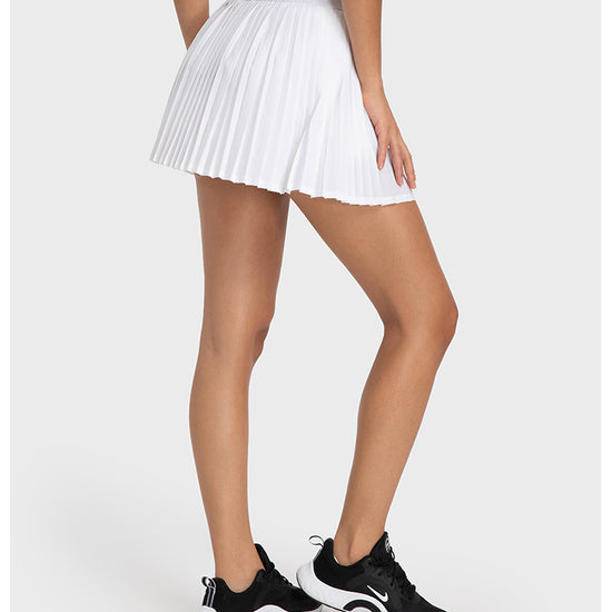 This tennis skirt has become the focus of attention on the sports field with its elegant design and excellent athletic performance. The skirt adopts a high waisted design, perfectly showcasing the graceful figure of women, and the pleats at the hem add a dynamic beauty. The fabric is lightweight and breathable, comfortable to wear, keeping you dry during exercise. Built in pocket for convenient storage of items. Whether it's tennis matches or daily sports, this tennis dress can provide you with a professional sports experience and fashionable style.
