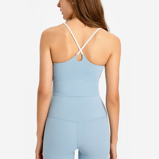 With its unique design and high-quality fabric, this light-coloured skinny sports bra brings a new wearing experience for you who love sports. Cross straps design not only adds fashion sense, but also can better fix the bra to prevent shaking during exercise. The waist cinching design can show your waist curve perfectly. Made of breathable and sweat-absorbent fabric, it can keep your skin dry and comfortable even during exercise. The colour tone is fresh and natural, perfect for spring and summer season. Whether it's yoga, running or calisthenics, this sports bra will provide you with all-round comfortable support. Pair it with shorts in the same colour to keep you looking elegant and charming even during exercise. Choose it to start your fashionable sports life!