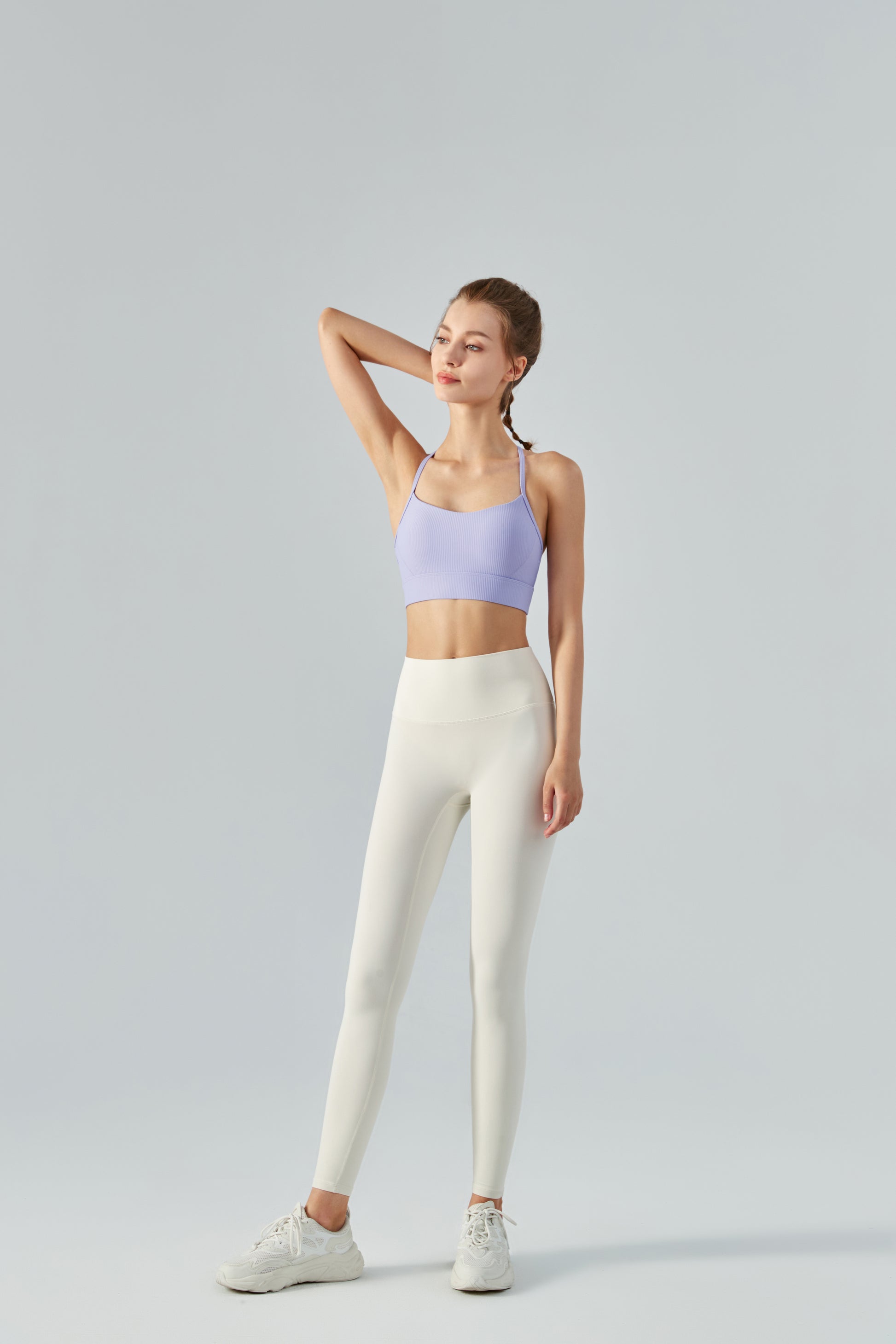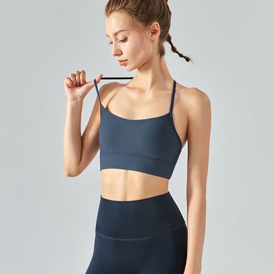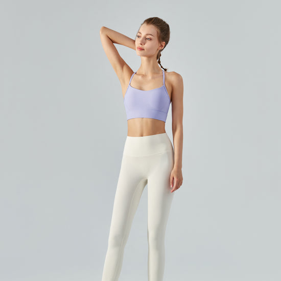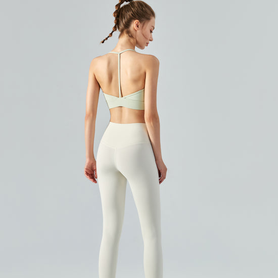 This T-shaped back sports bra awakens spring and summer vitality with a fresh light green tone. The unique T-shaped hollow back design breaks the dullness of sports wear, and the large exposed back lines are smooth and clean, showcasing elegant shoulder and neck curves while injecting fashionable tension into yoga, fitness and other scenes. The high elasticity support shoulder strap, combined with ergonomic cutting, fits the curve of the back while providing stable support, even during high-intensity exercise, it can maintain zero restraint. The breathable and skin friendly fabric is cleverly integrated with the no steel ring design, allowing every deep breath to be light and comfortable. Whether it's sweating on the training ground or going out on the street, it can interpret the charm of confidence with sports aesthetics.