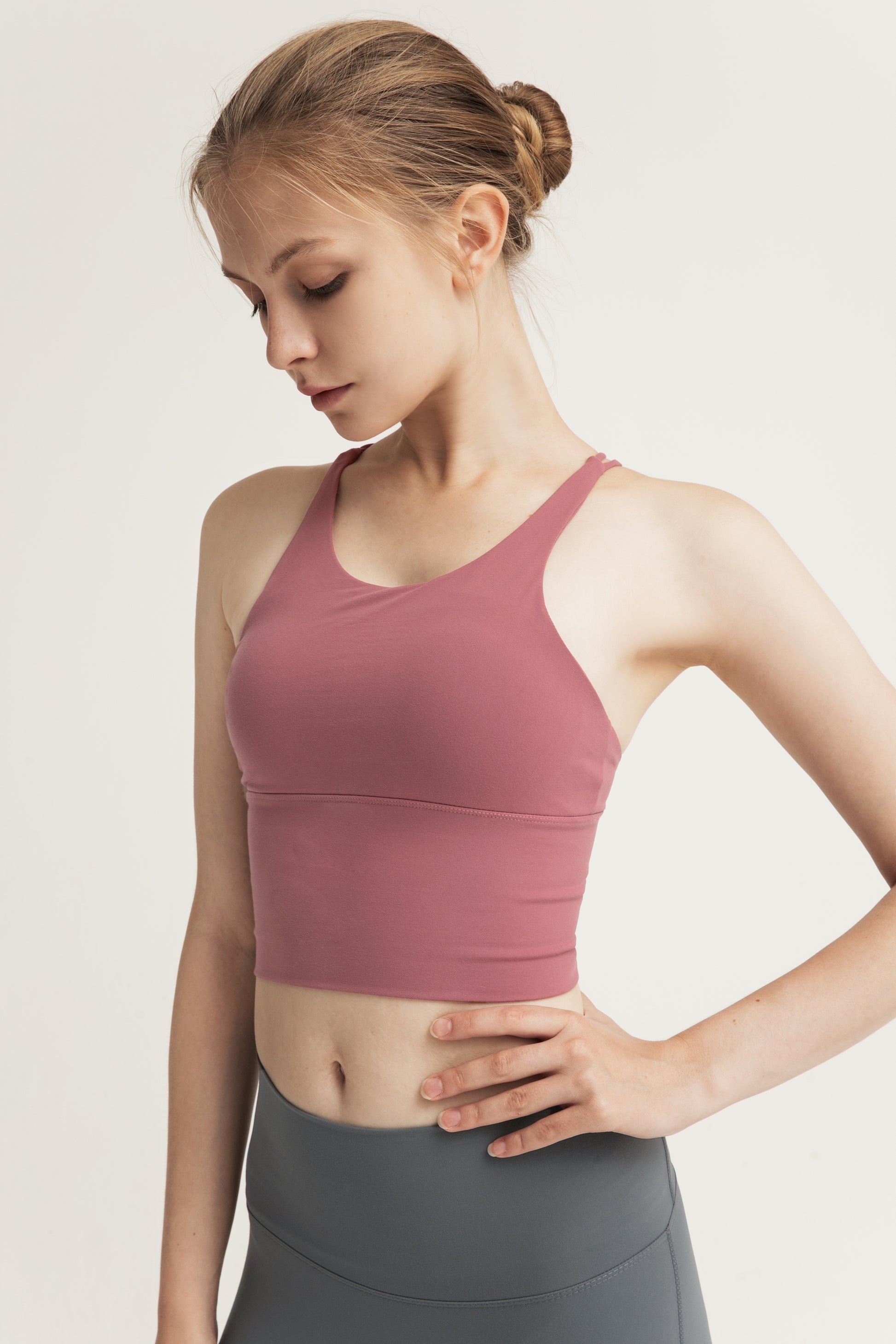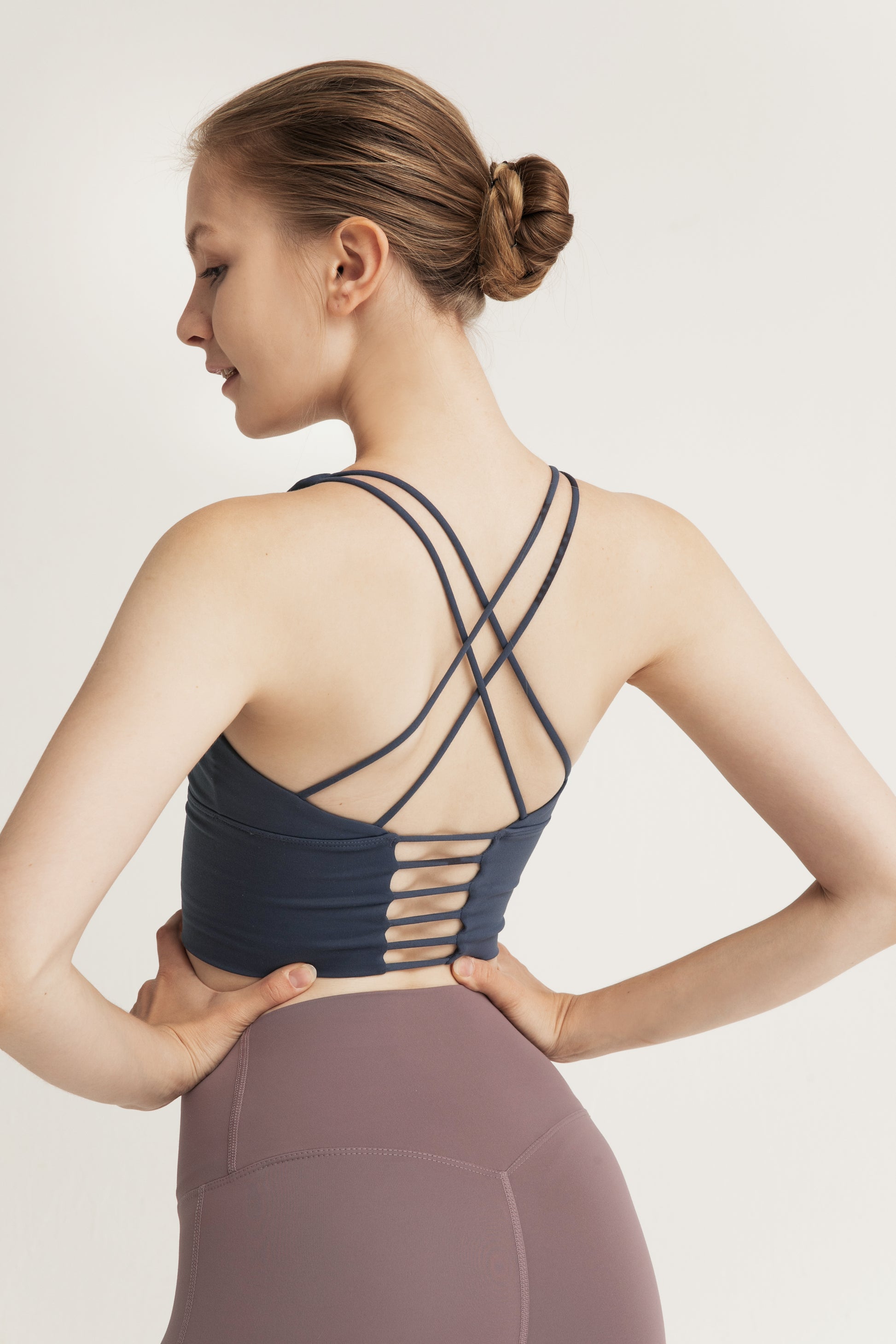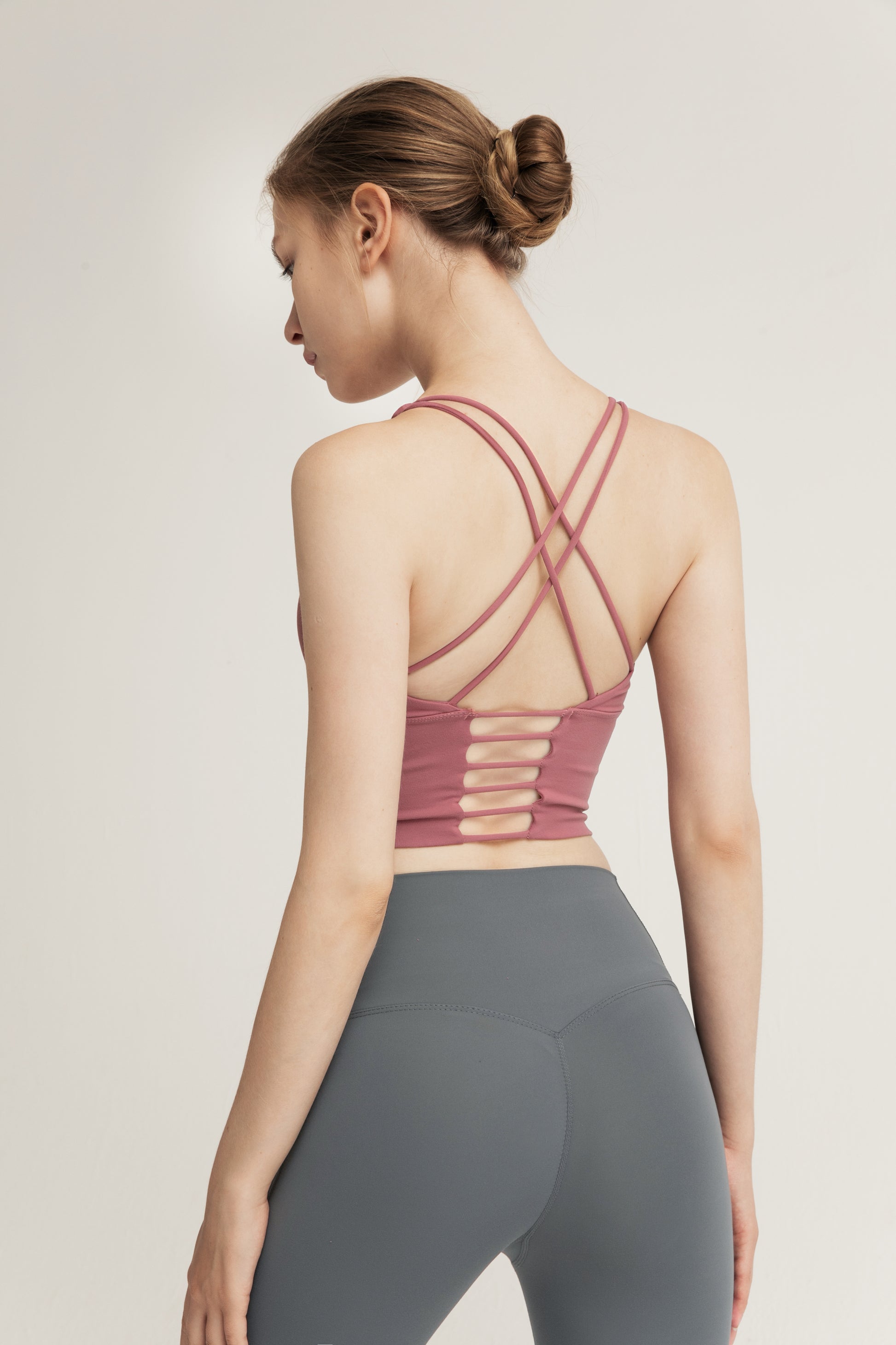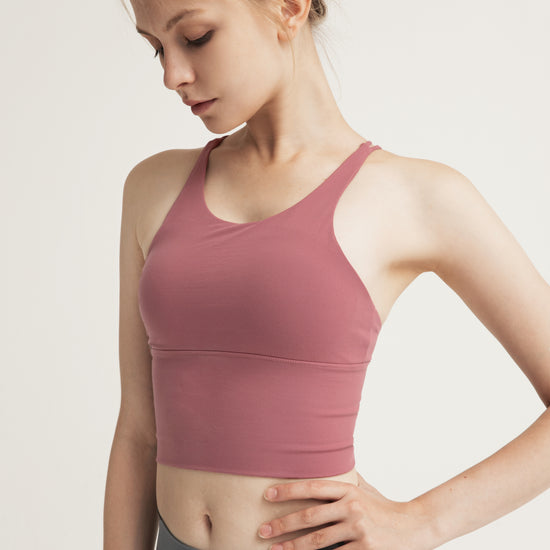 This sports bra interprets fashionable sports aesthetics with a simple design, using high-quality nylon spandex blend fabric, which is lightweight, breathable, and highly elastic to fit the skin. The cross back design with hollowed out details not only outlines elegant lines, but also enhances air circulation, making it refreshing and unrestricted during exercise. The moderately wide shoulder straps and lower circumference provide stable support, perfectly suitable for low-intensity exercises such as yoga and Pilates. It can also be used as a daily inner or outer outfit for sports jackets or casual wear, showcasing vitality and fashion sense, achieving a balance between functionality and aesthetics.