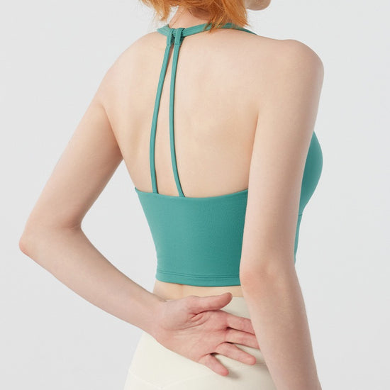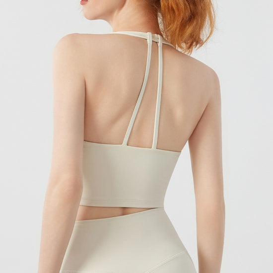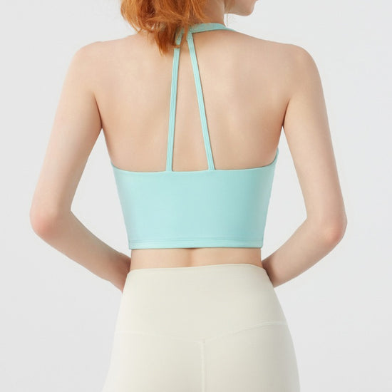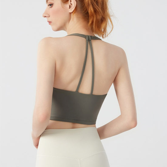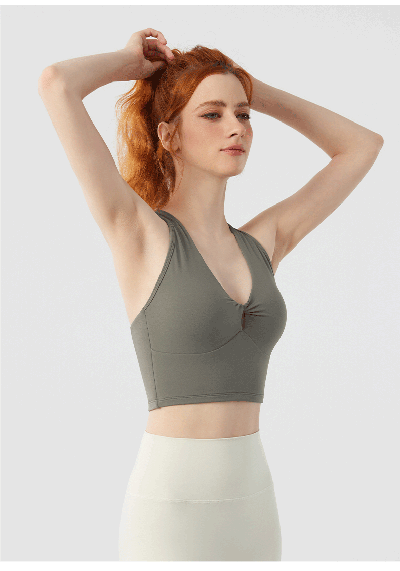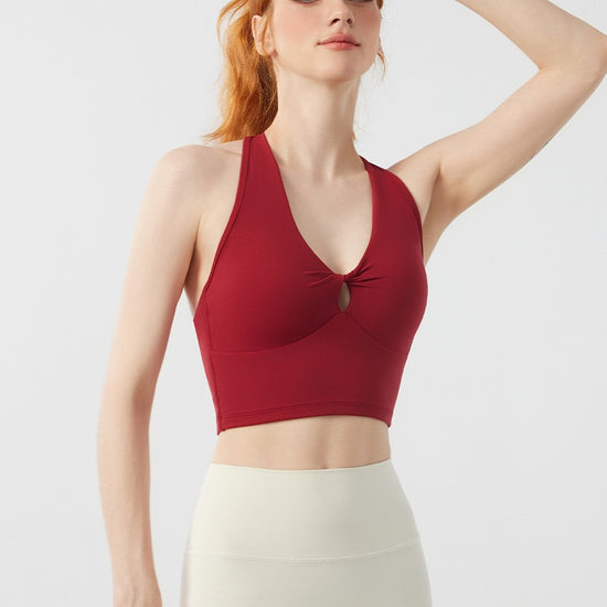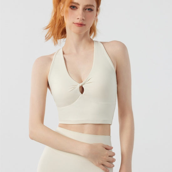 Twist Front Strappy Back Sports Bra – Seamless Longline Yoga Top