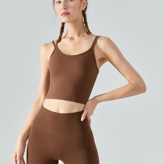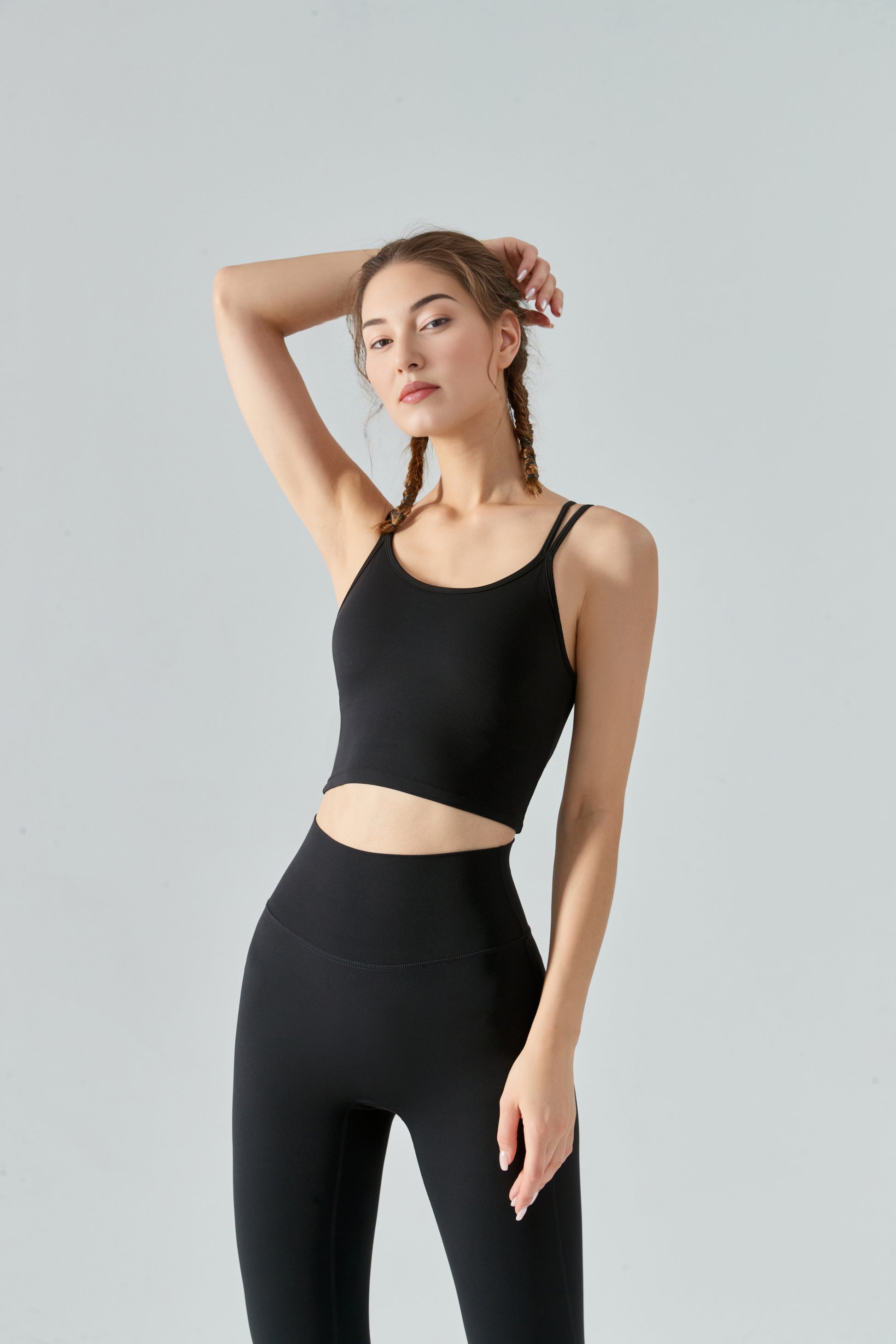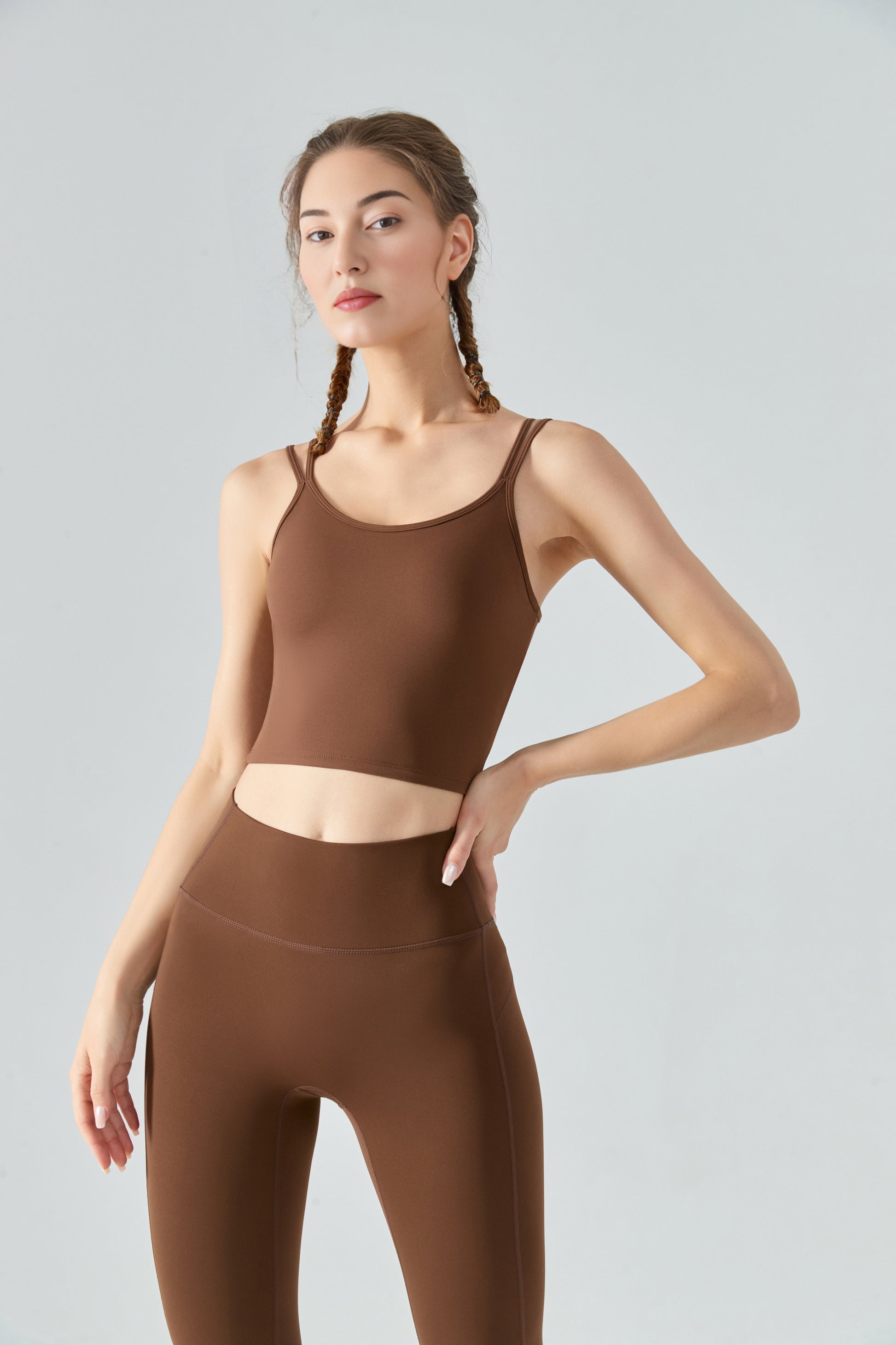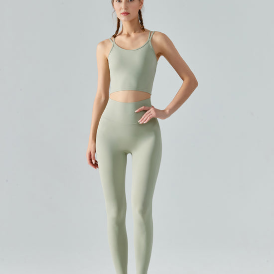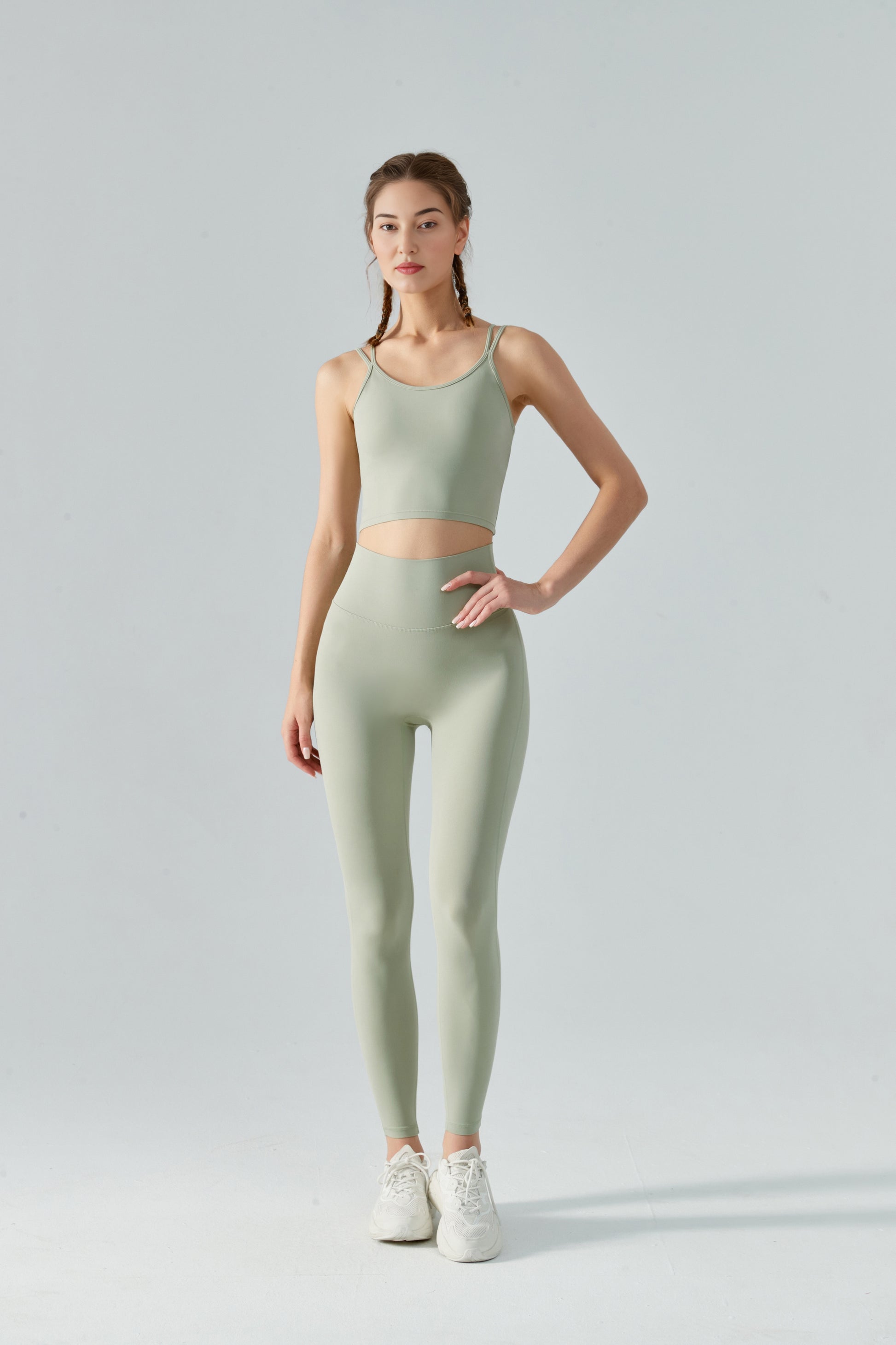 This light grey green sports bra combines minimalist design with fashionable ingenuity, with a square neckline outlining elegant shoulder and neck lines, and thin shoulder straps lightly fitting the shoulders. The innovative pleat design on both sides of the waist cleverly modifies the waistline, forming a three-dimensional fold hierarchy, breaking the dullness of sportswear and giving the shape a dynamic rhythm. High stretch fabric balances support and breathability, providing comfortable wrapping for both yoga stretching and strength training. The fresh color tones are suitable for various dressing scenarios, making sports equipment a fashionable item that showcases individual taste.