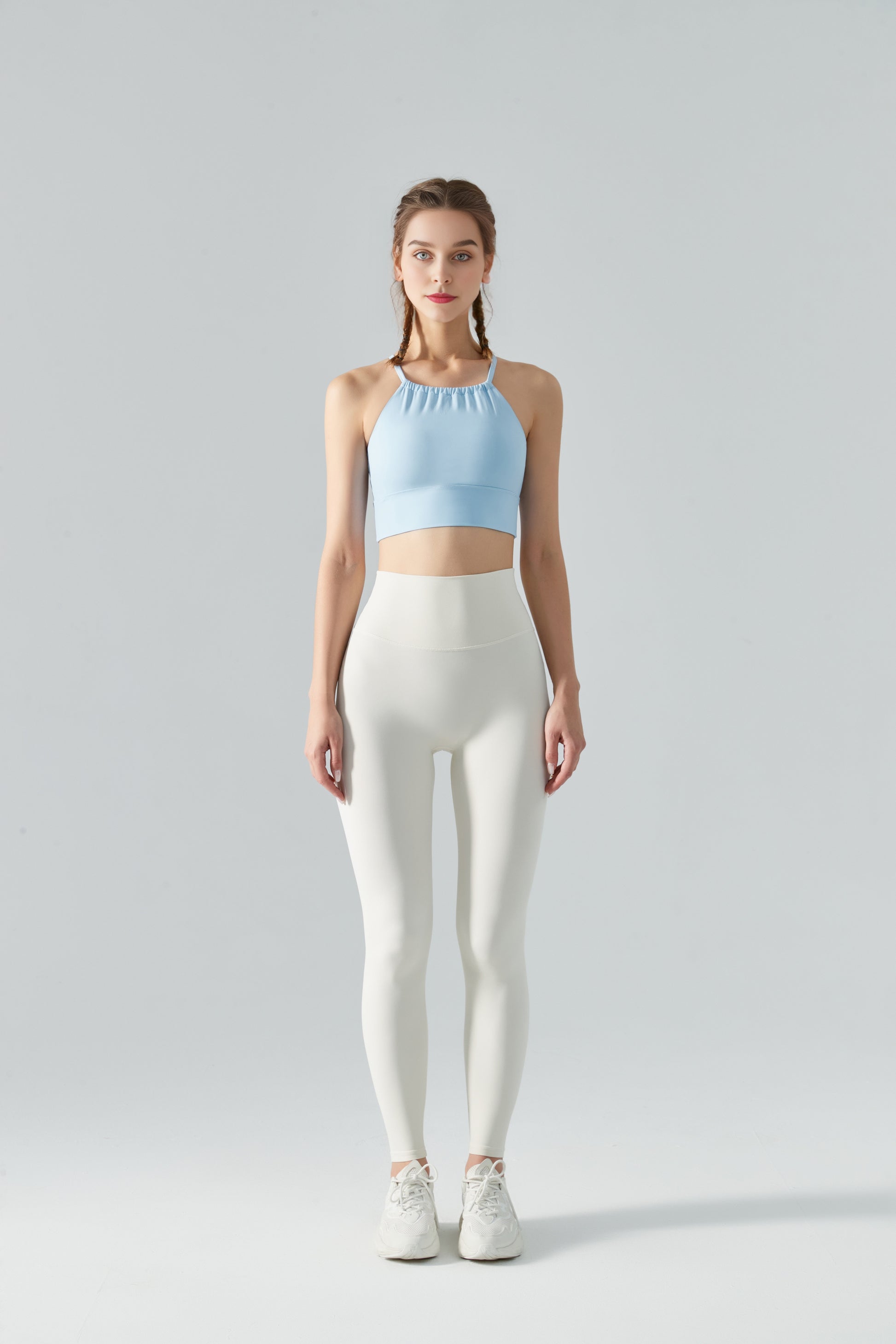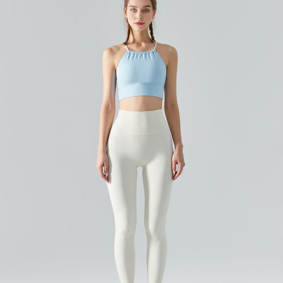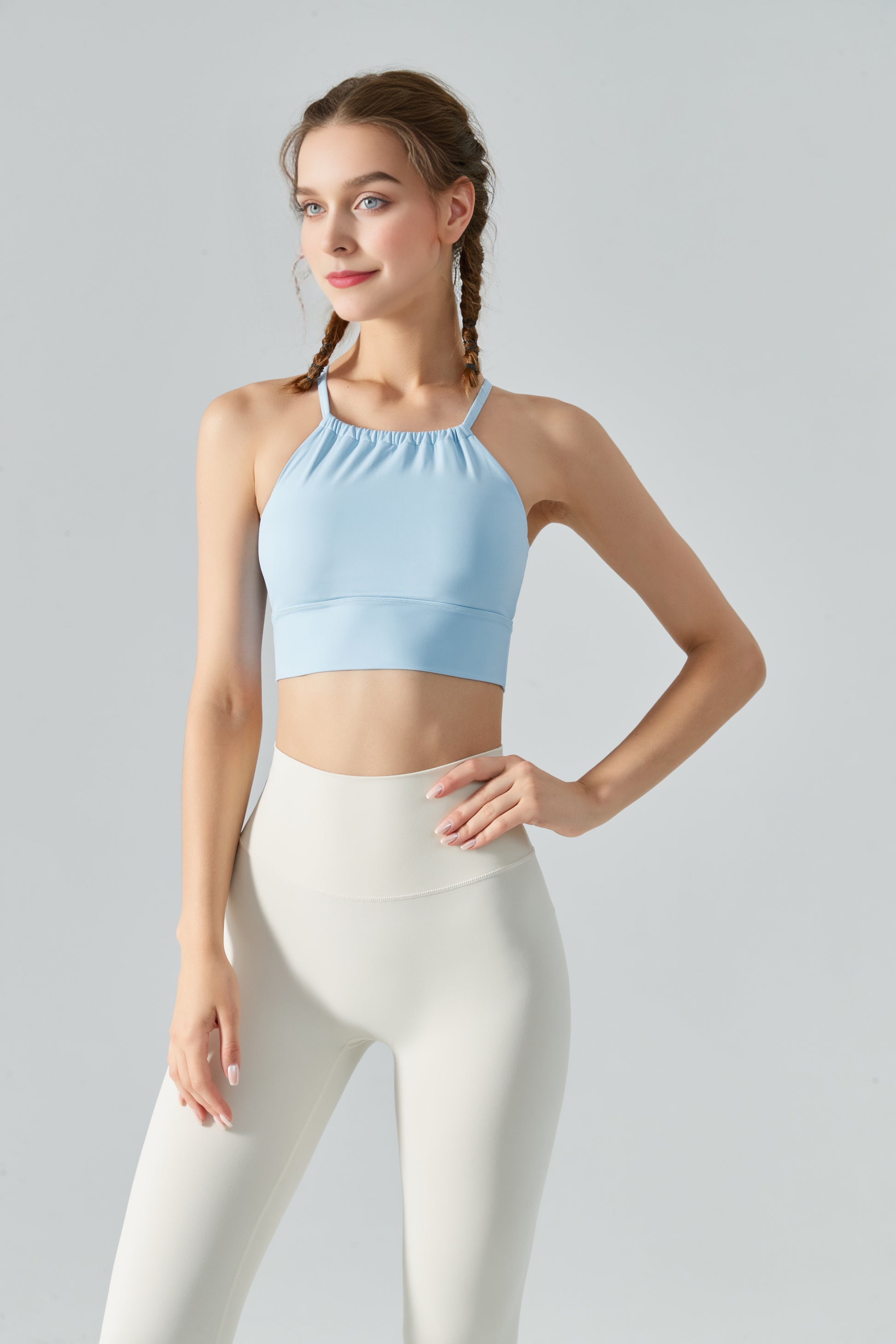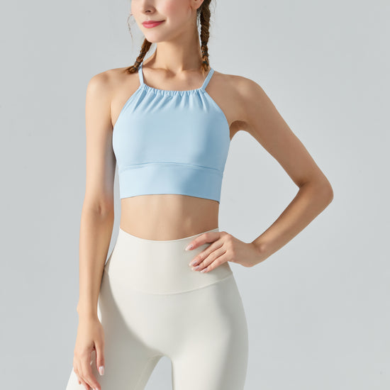 This light blue sports bra, with its simple yet stylish design, is the ideal choice for you when exercising. Using high-quality fabrics that are soft, comfortable, and breathable, allowing you to enjoy free breathing during exercise. The unique cut perfectly fits the body shape, showcasing charming body curves.